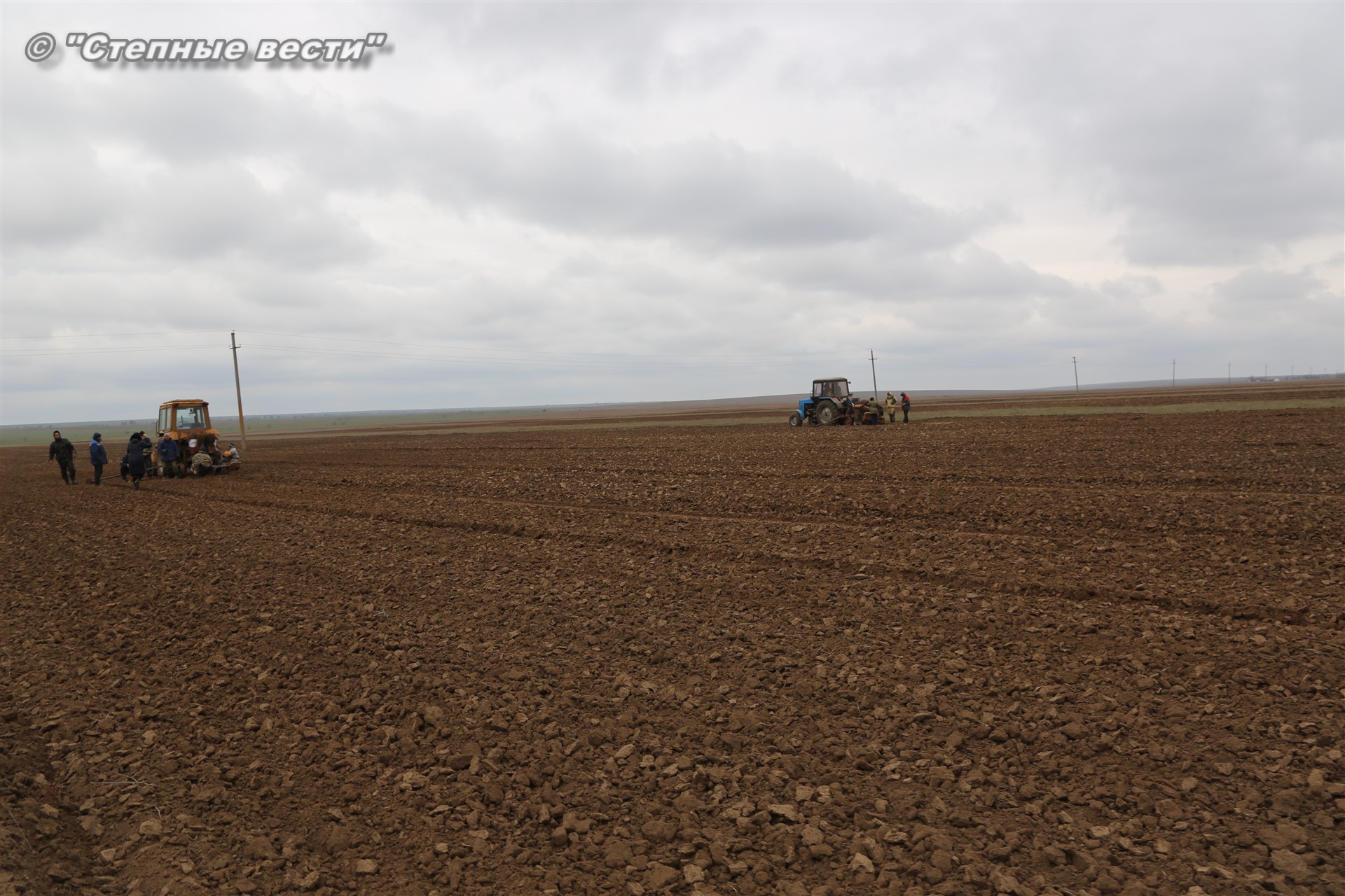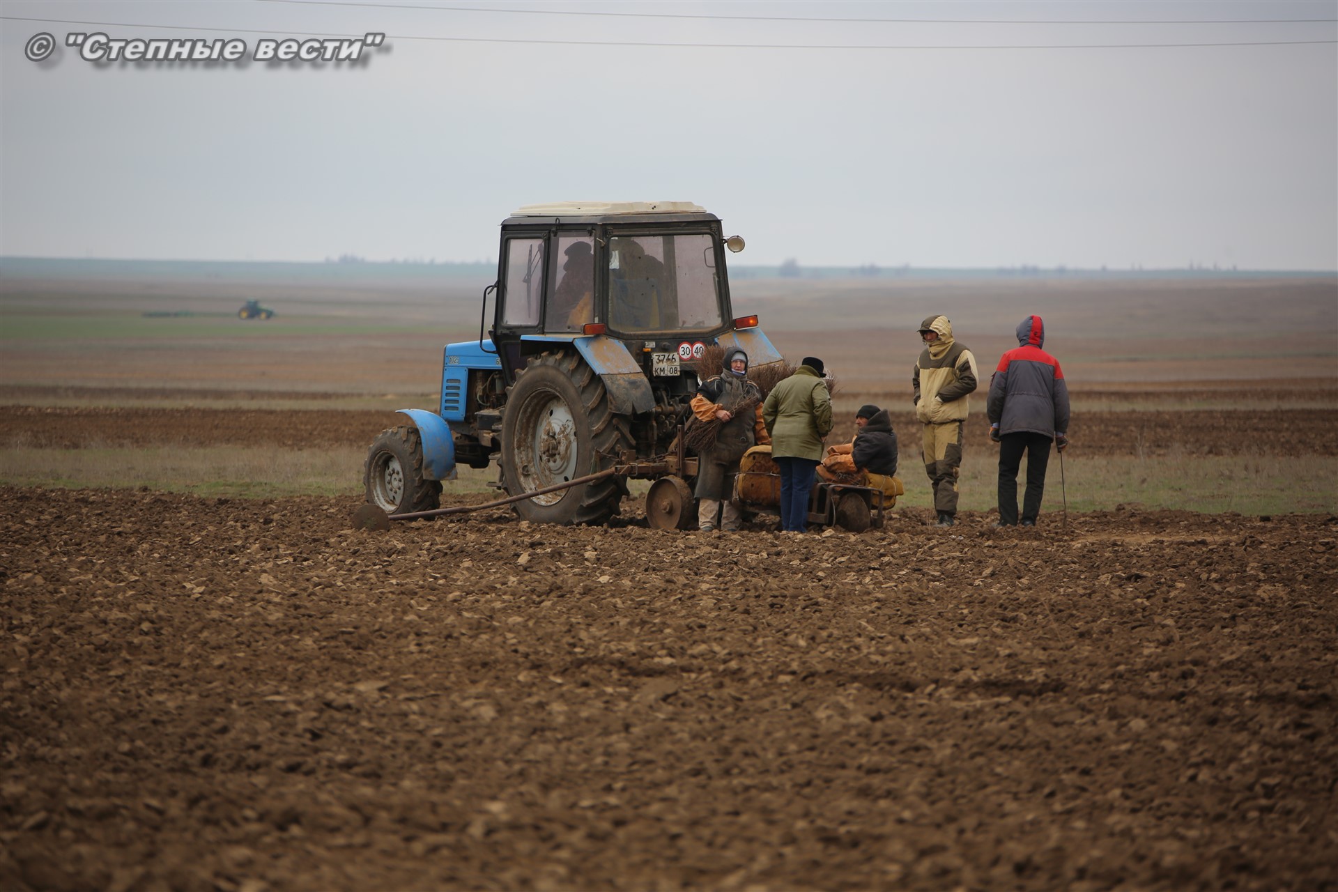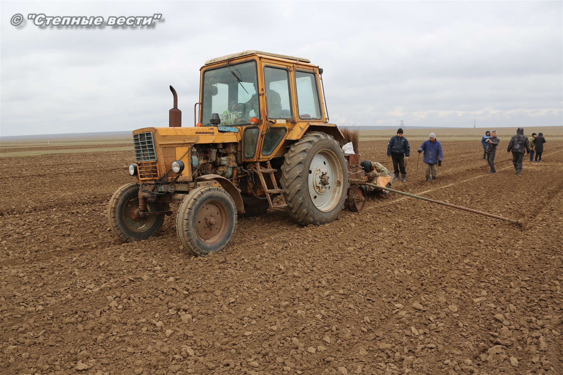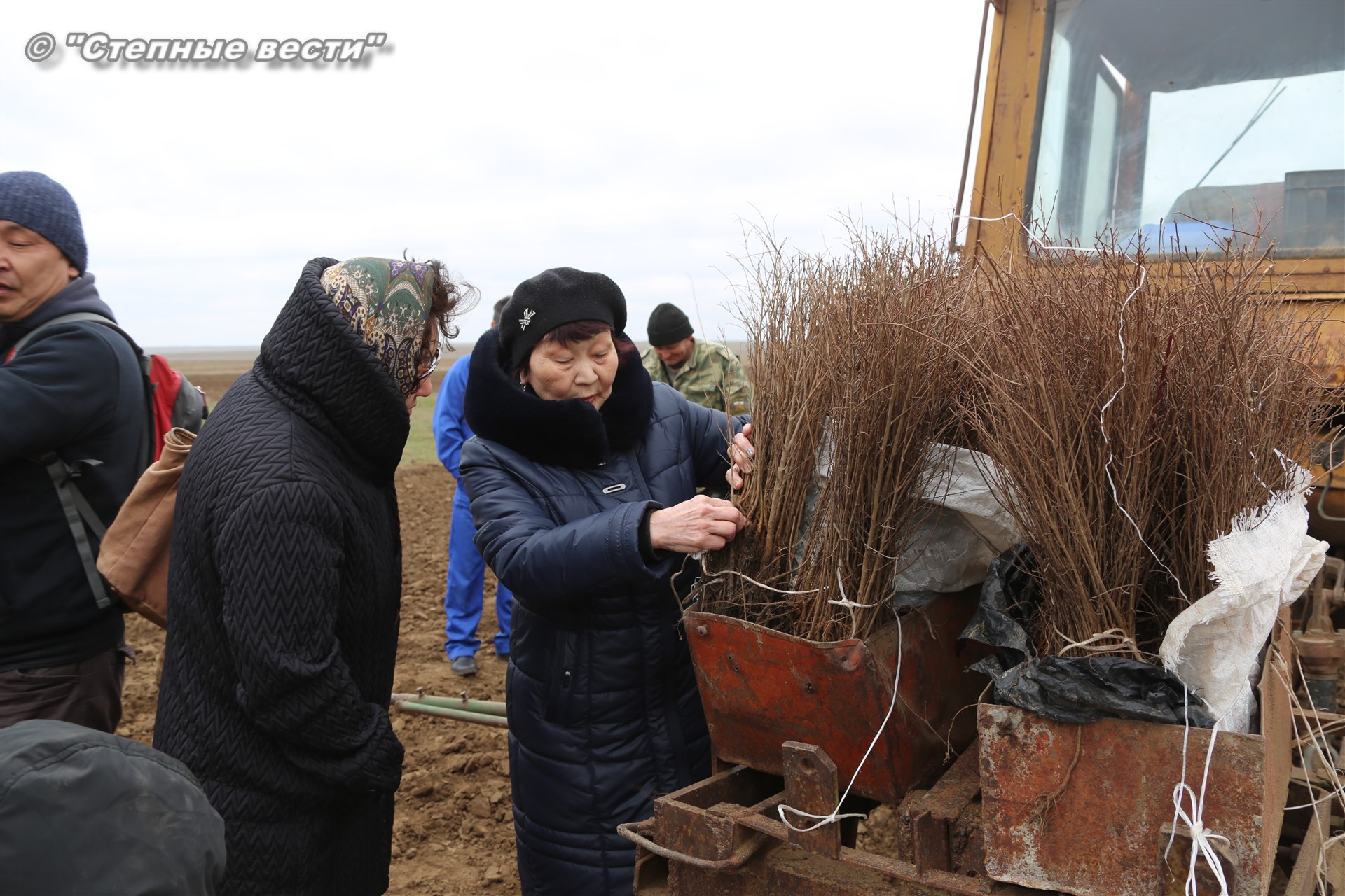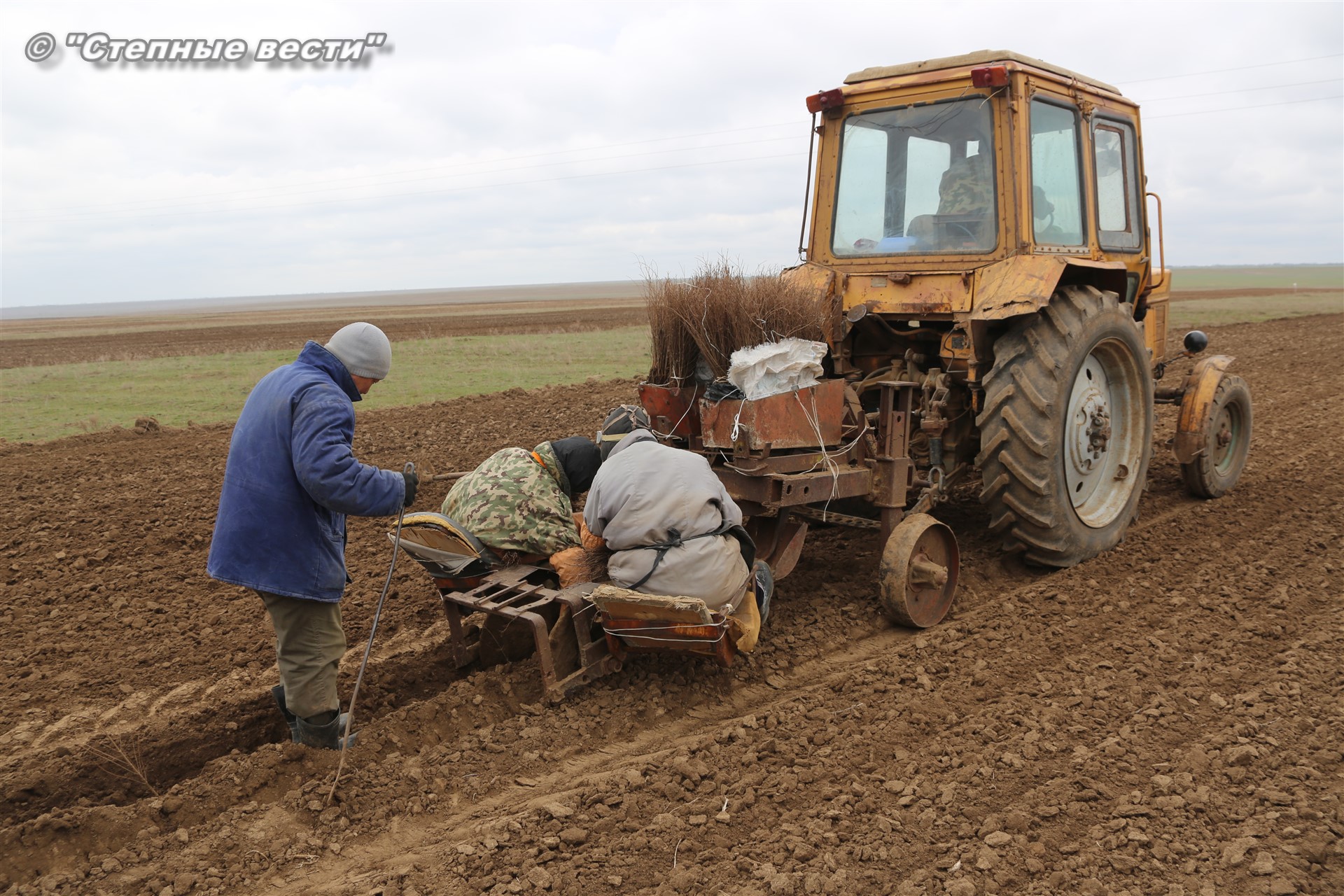 Как оказалось, до нас механизаторы и рабочие на поле с вешками уже успели высадить часть сеянцев вяза. С нашим прибытием трактора с сидящими за ними в специальных люльках «сеятелями» вновь тронулись в неспешный путь.