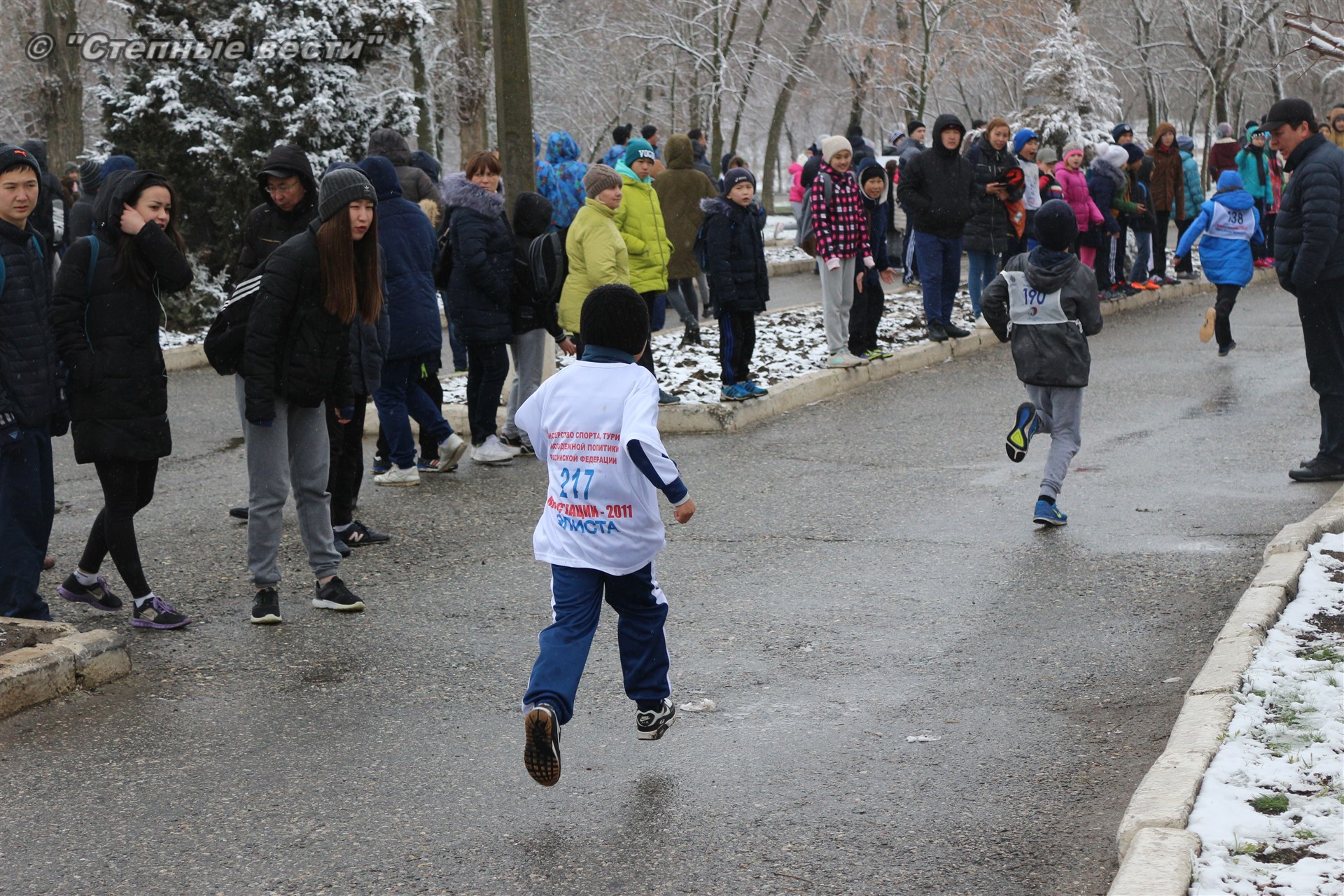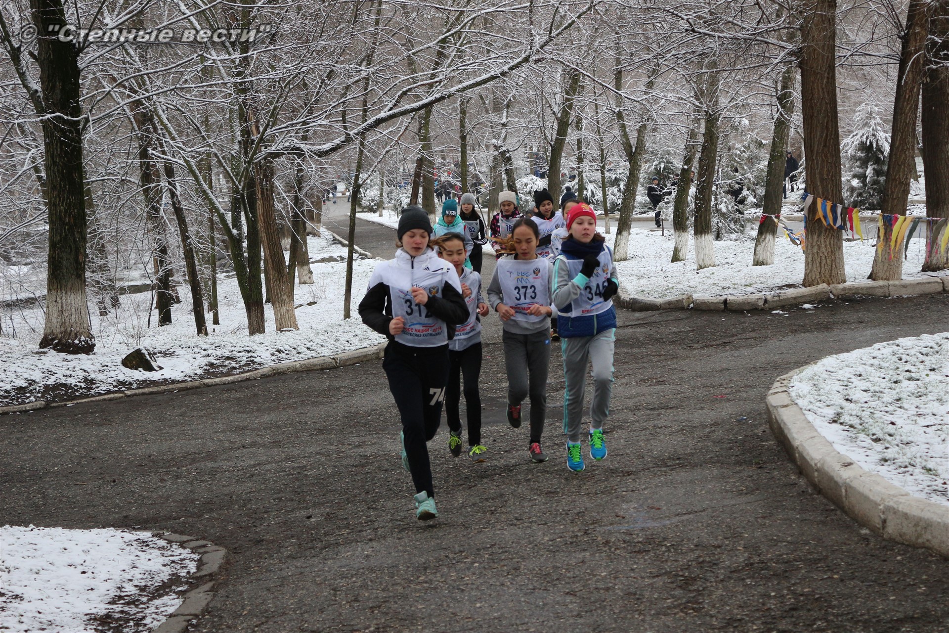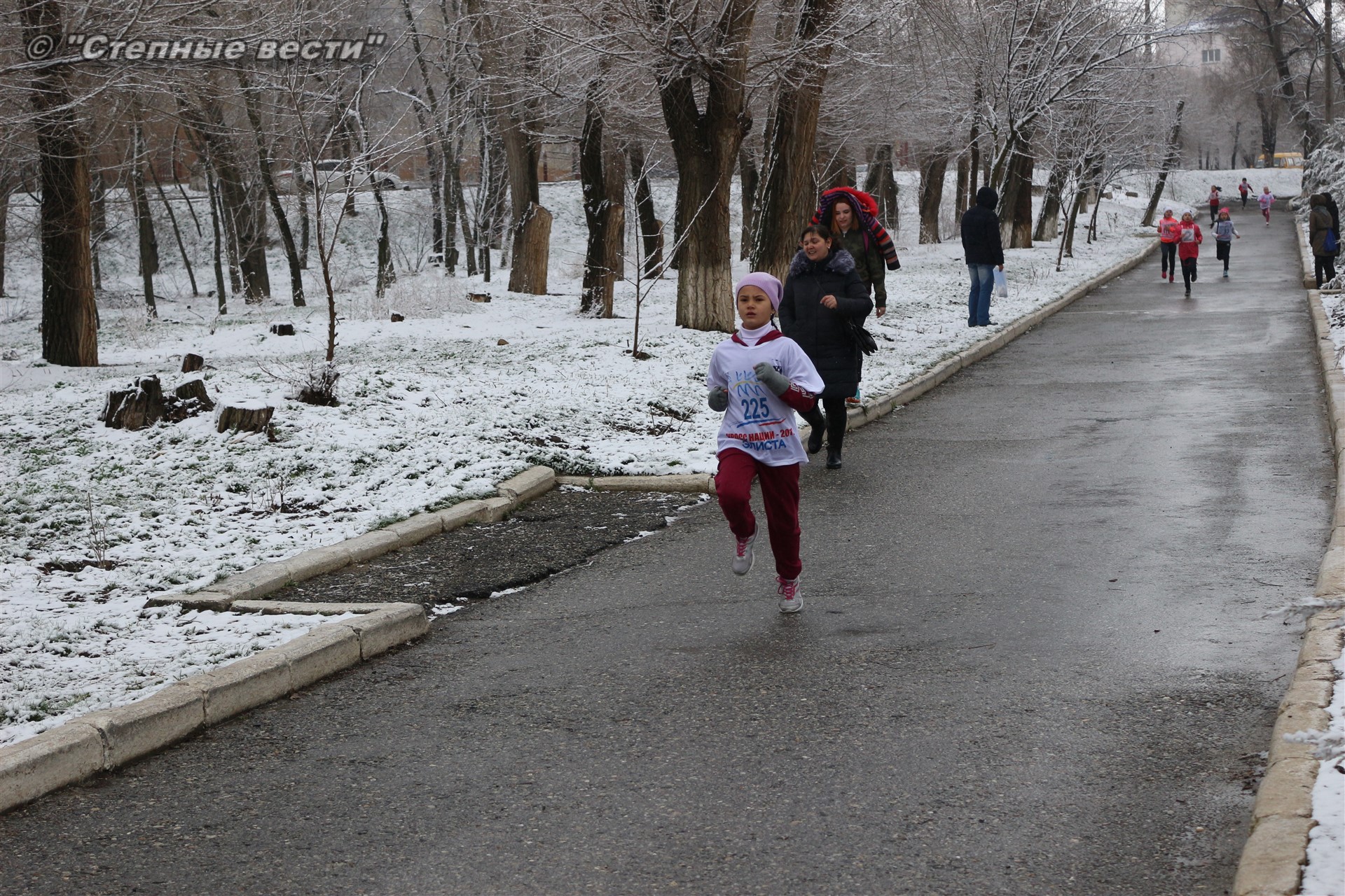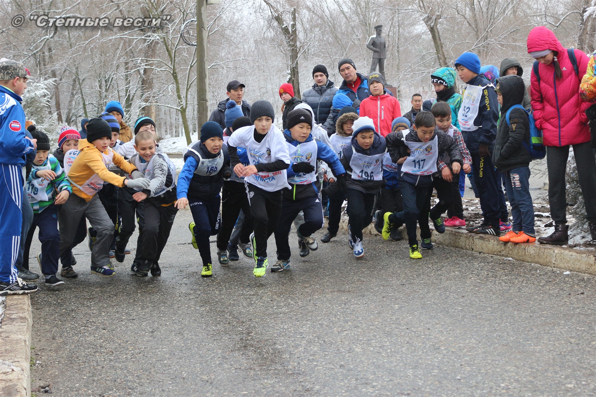 Несмотря на установившуюся сегодня холодную погоду и снег в турнире приняло 280 юных кроссменов из районов и Элисты, а также гости из Волгодонска Ростовской области.