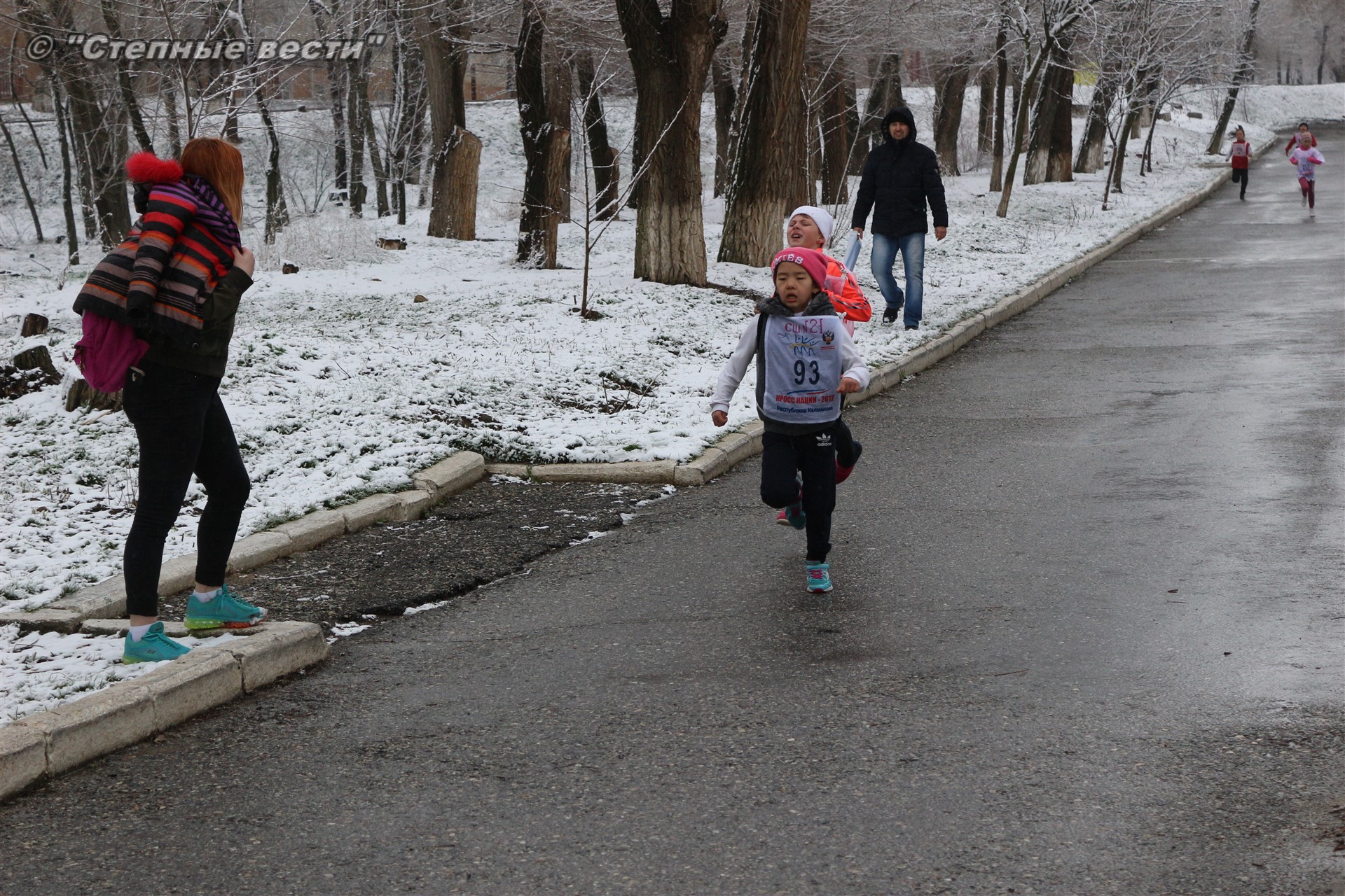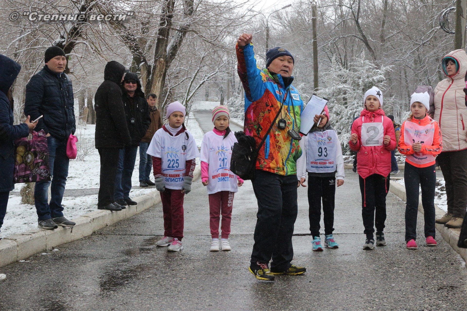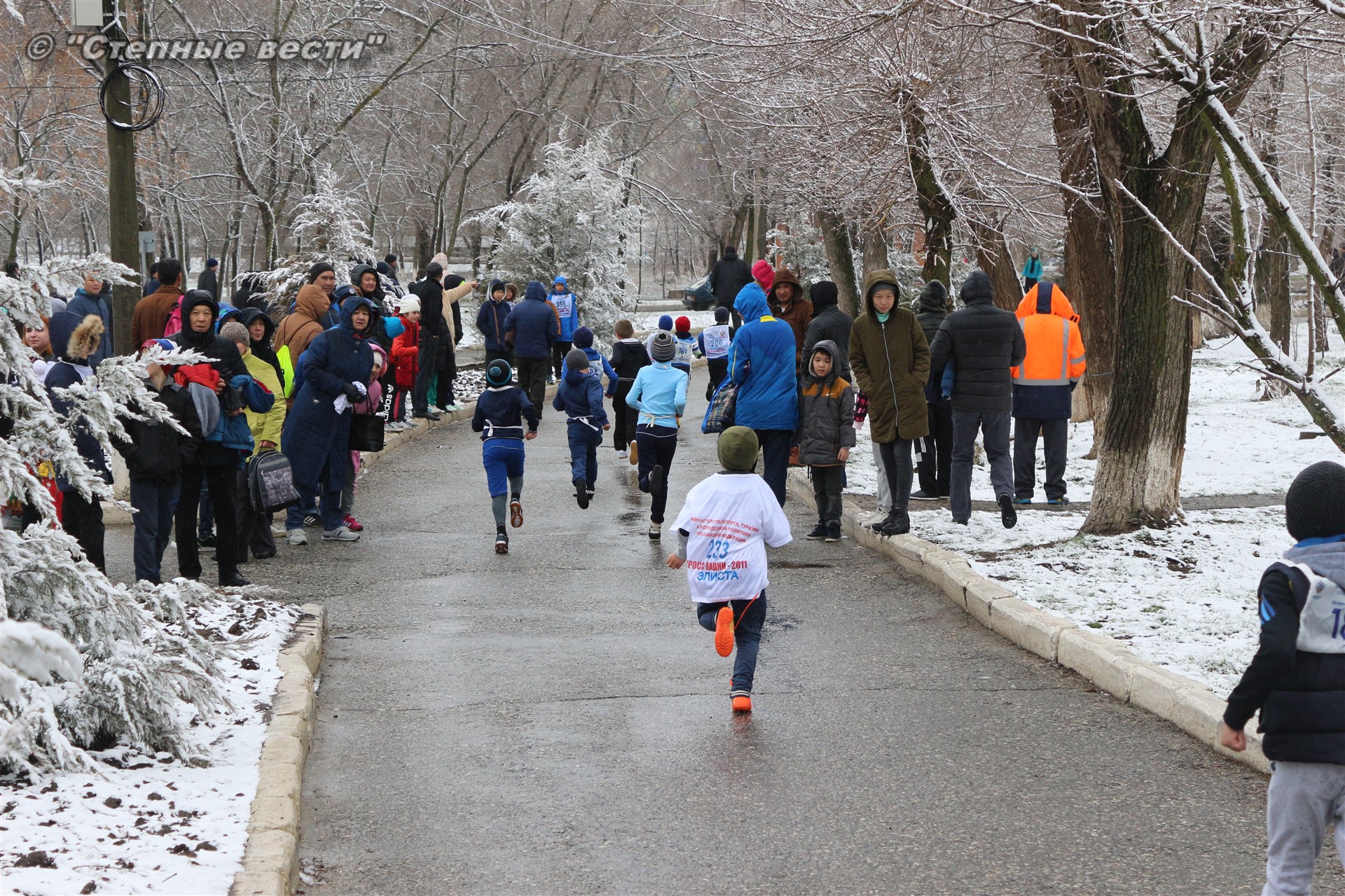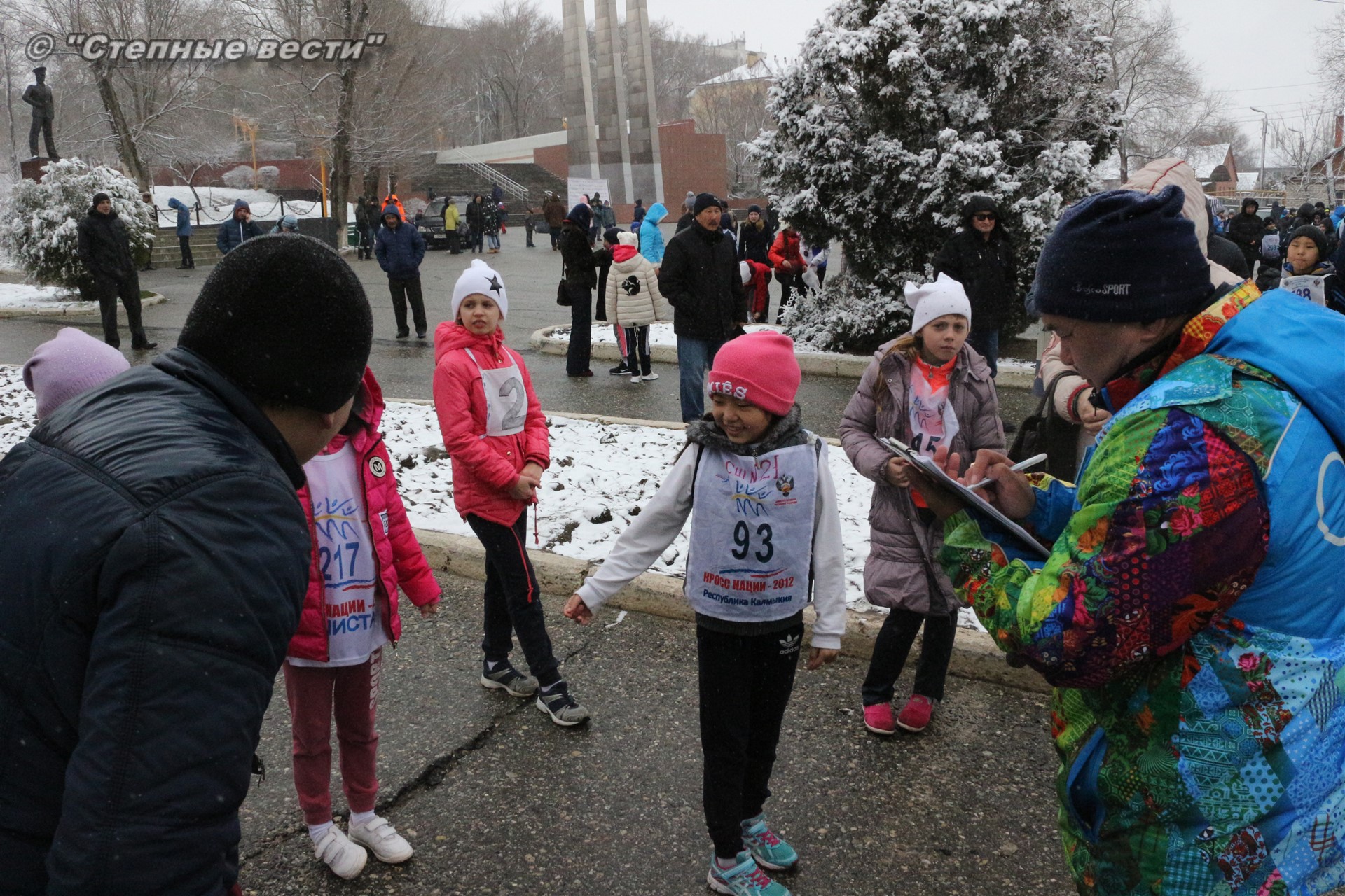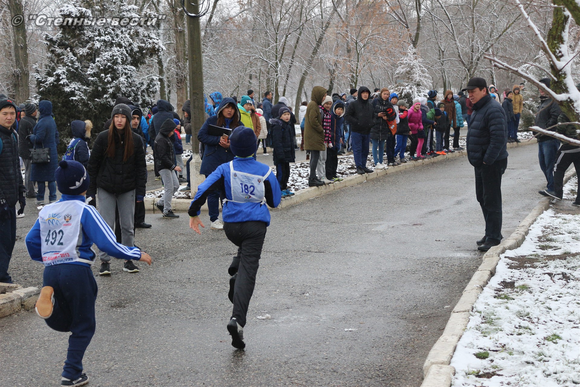 Несмотря на установившуюся сегодня холодную погоду и снег в турнире приняло 280 юных кроссменов из районов и Элисты, а также гости из Волгодонска Ростовской области.