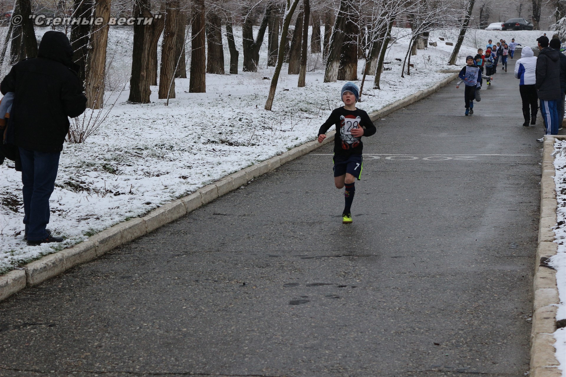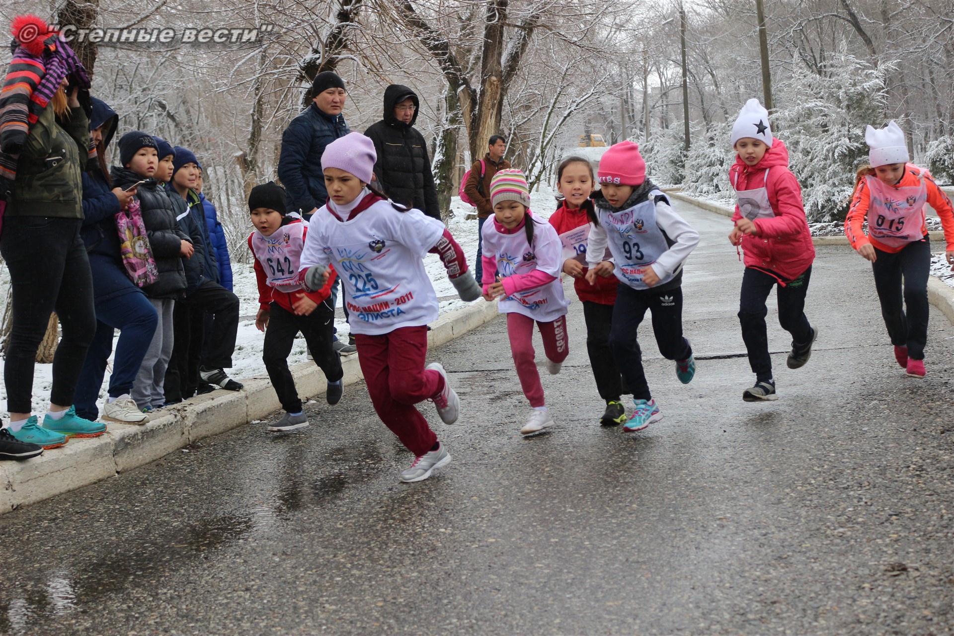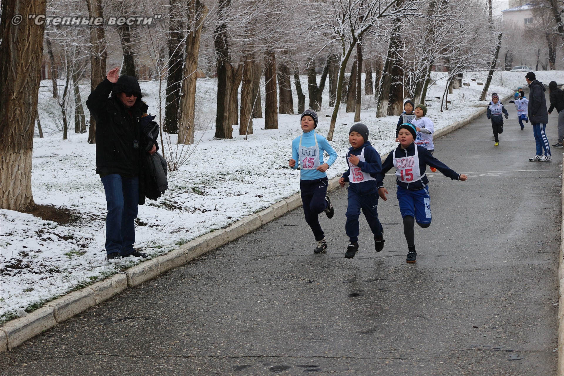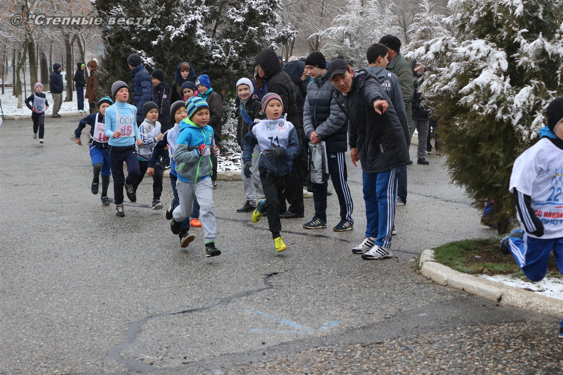 Несмотря на установившуюся сегодня холодную погоду и снег в турнире приняло 280 юных кроссменов из районов и Элисты, а также гости из Волгодонска Ростовской области.