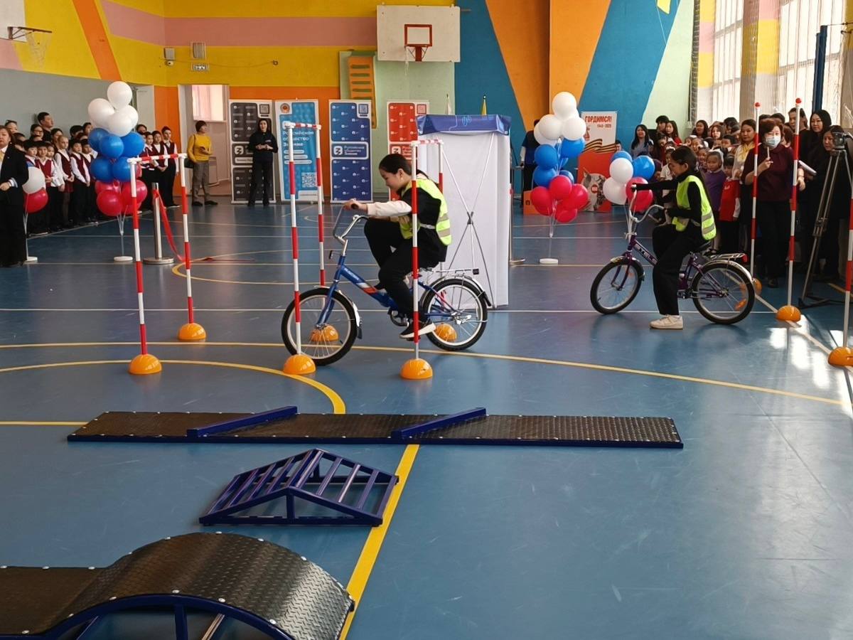 Теперь учащиеся 17 школы могут тренировать свое мастерство управления велосипедом на современных тренажёрах: «Слалом», «Круг», «Проезд под перекладиной», «Желоб», «Дорога с выбоинами», «Волны – Волнообразная доска», «Наклонная доска», «Дорога с ямами», «Узкая доска» и «Рельсы».