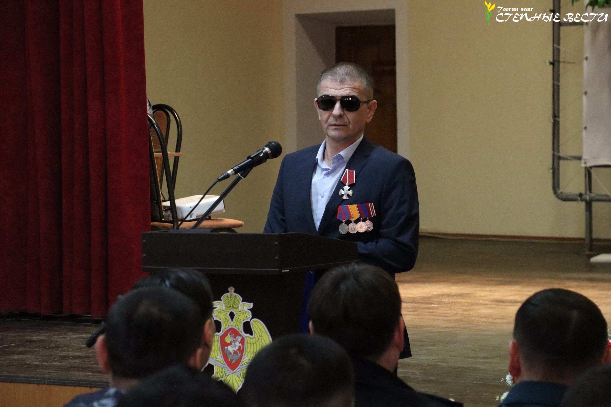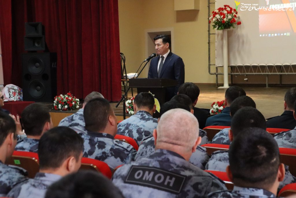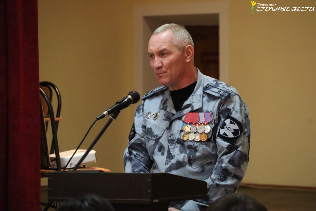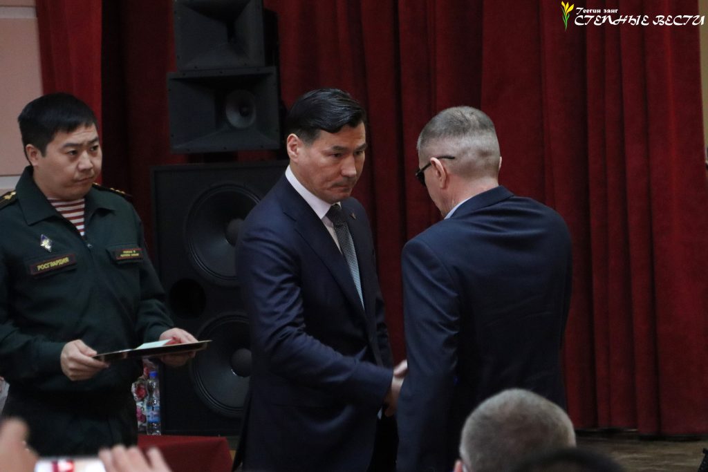 В преддверии Дня защитника Отечества Глава Калмыкии Бату Хасиков встретился с личным составом Управления Росгвардии по Калмыкии и наградил орденом Мужества капитана полиции в отставке Виталия Пасько.