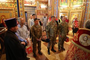 Сегодня, в день памяти великомученика Георгия Победоносца, калмыцкие общественники и ветераны специальной военной операции посетили Казанский кафедральный собор Элисты.