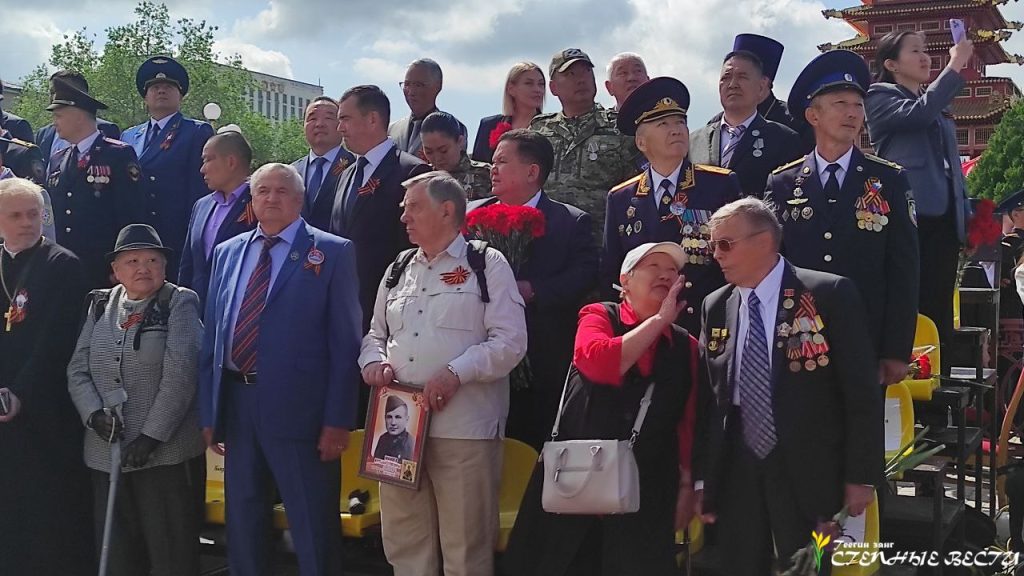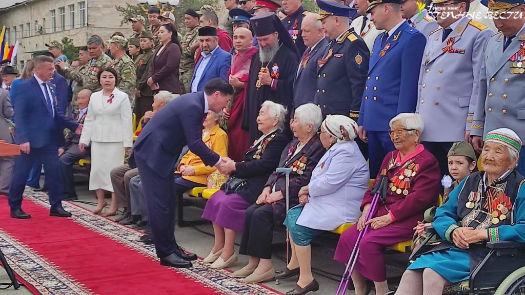 После завершения парада у мемориального комплекса в честь Героев Гражданской и Отечественной войн состоялся торжественный митинг. Мероприятие началось с театрализованного пролога. Перед зрителями предстали образы героев – богатыря Джангара, Серебджаба Тюменя, Эрдни Деликова и Мингияна Лиджиева.