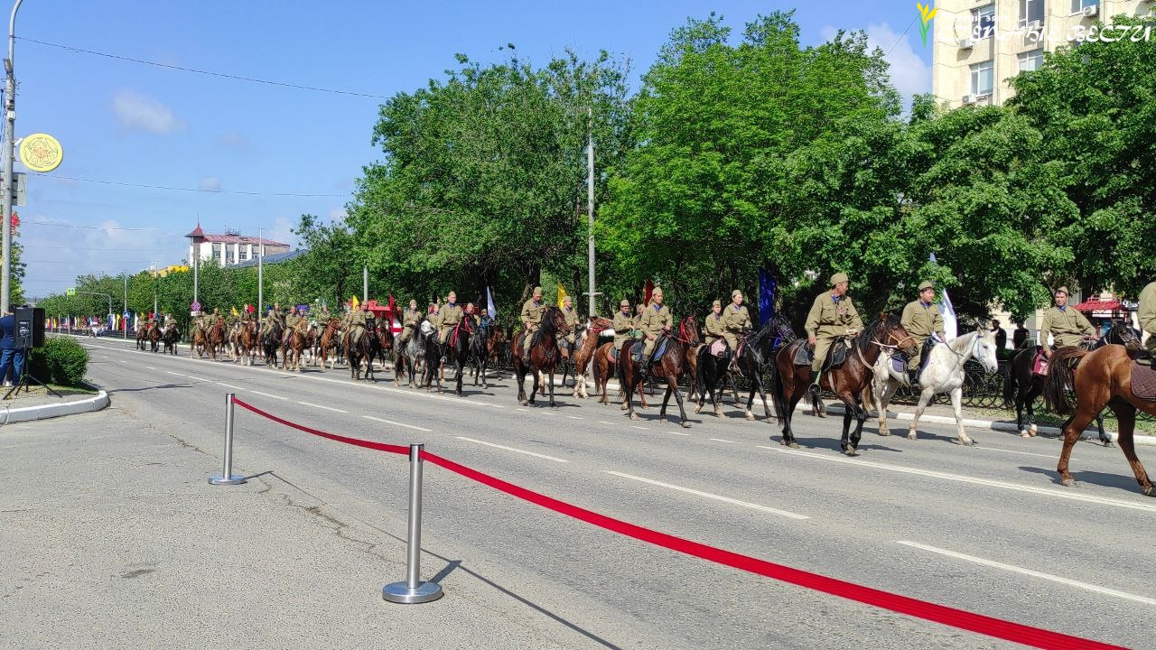 Главным событием парада стали 80 всадников в форме воинов 110-й Отдельной Калмыцкой кавалерийской дивизии. Подвиги доблестных кавалеристов, насмерть стоявших на Дону и оборонявших Кавказ, воинов 28-Армии, освобождавших нашу республику от фашистов, навсегда останутся в благодарной памяти потомков.