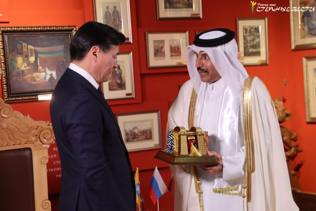 Бату Хасиков поблагодарил главу дипмиссии за визит и выразил уверенность в последующих встречах с Его Высочеством. Он подчеркнул, что Ахмед Насер Аль-Тани лично внес огромный вклад в то, чтобы большое количество катарцев познакомились с Россией, а россияне – с этой замечательной страной. Хасиков также отметил, что масштабирование международной повестки в Калмыкии стало возможным при содействии советника Президента РФ Антона Кобякова. Встреча завершилась обменом памятными подарками.