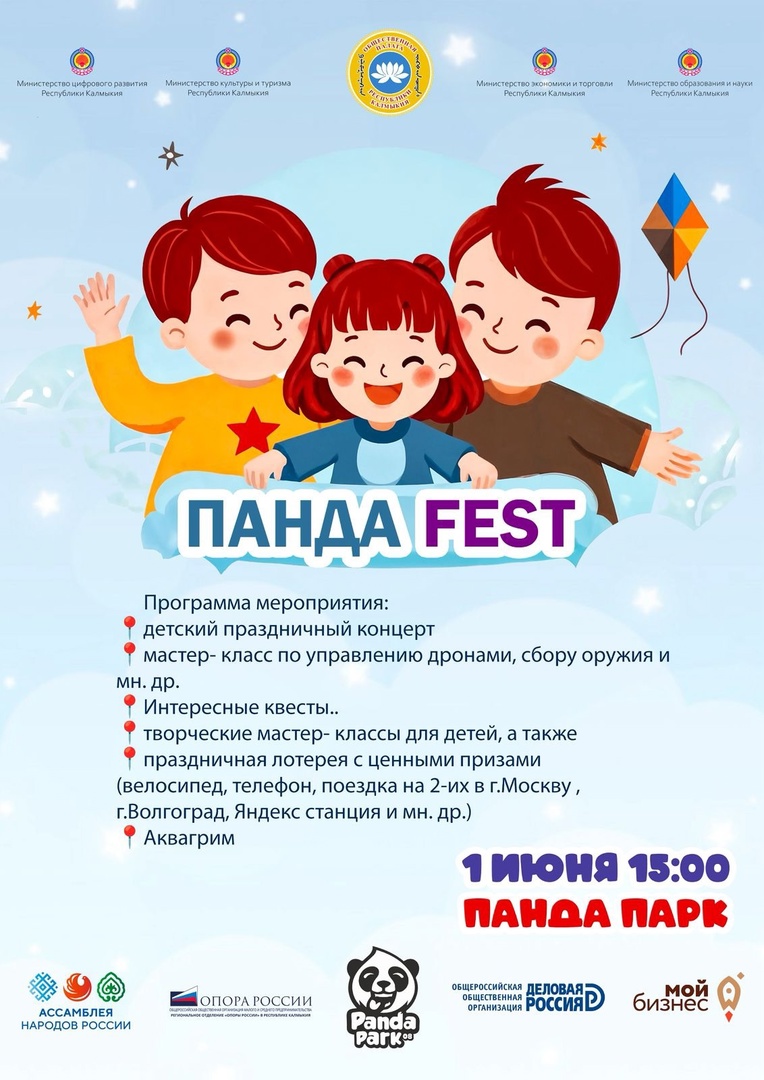 Его проведут в Элисте, в «Панда Парке». Для ребят подготовили увлекательные квесты и творческие мастер-классы. В программе также праздничный концерт, мастер-класс по управлению дронами и сбору оружия. Юным гостям фестиваля предложат аквагрим и лотерею с ценными призами. Организаторы разыграют велосипед, телефон, поездки на двоих в Москву, Волгоград, Яндекс-станцию и многое другое.