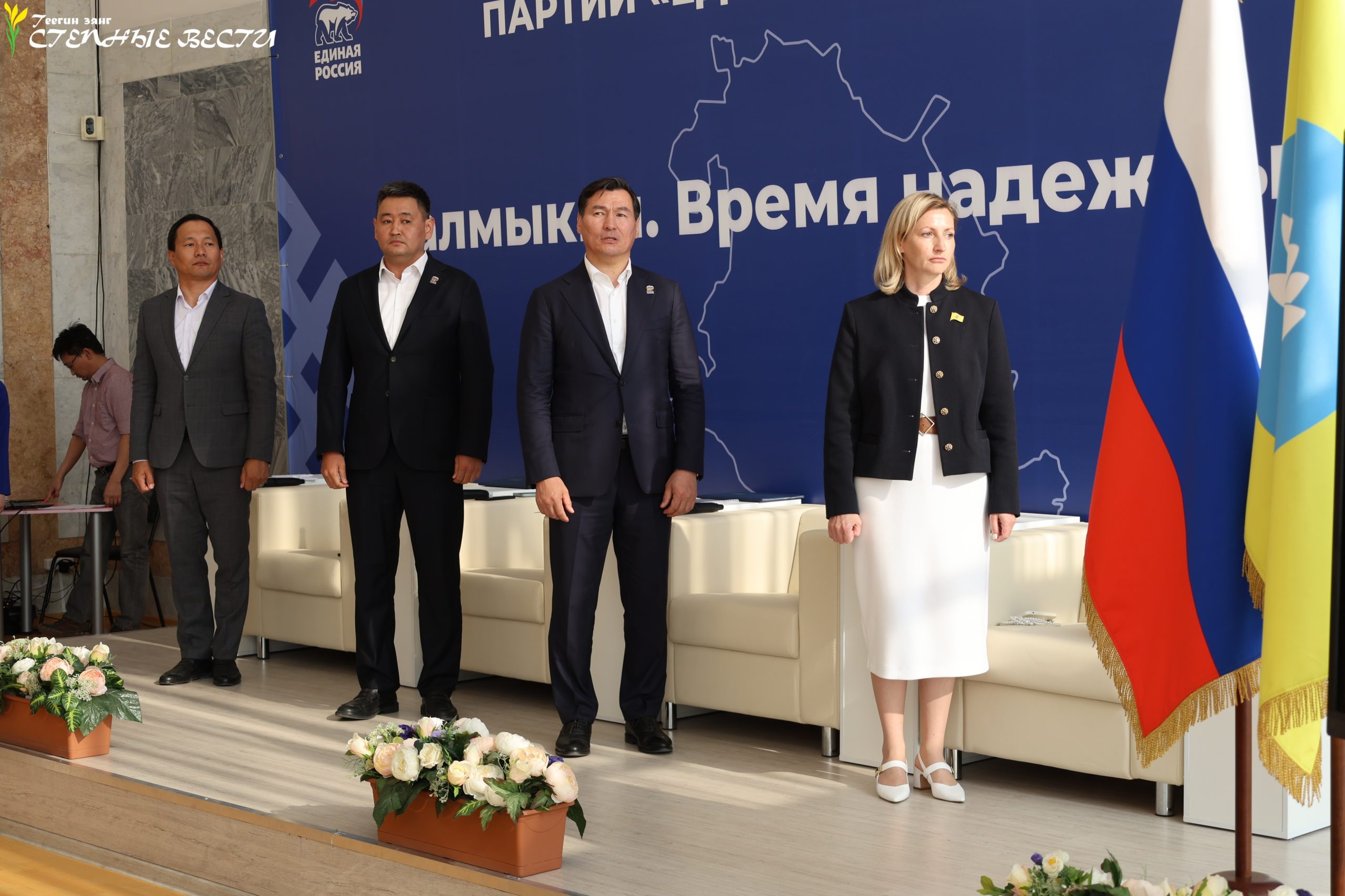 В ходе мероприятия состоялась торжественная церемония вручения партийных билетов новым членам партии. Среди них сенатор РФ Борис Хачиров, и.о. министра здравоохранения Калмыкии Булат Сараев, а также победители предварительного голосования – ветеран СВО Петр Очир-Горяев и другие.