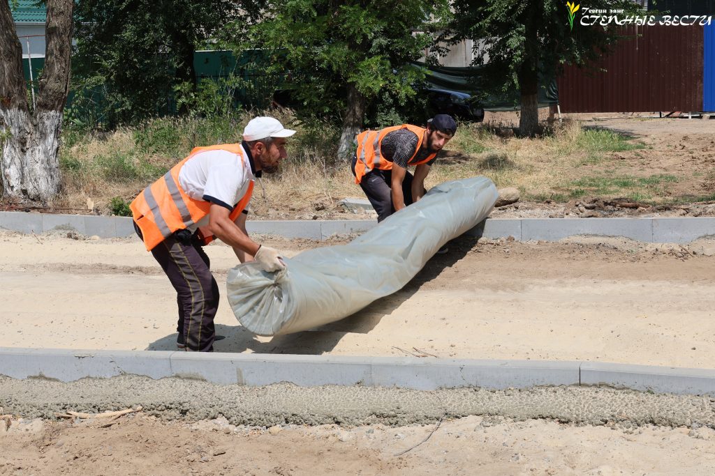 «На данный момент работы на объекте идут согласно графика. Задействовано три единицы техники и более 30 человек. Мы выполняем весь комплекс работ – от основания до озеленения территории», – рассказал представитель подрядной организации Марк Якубов.