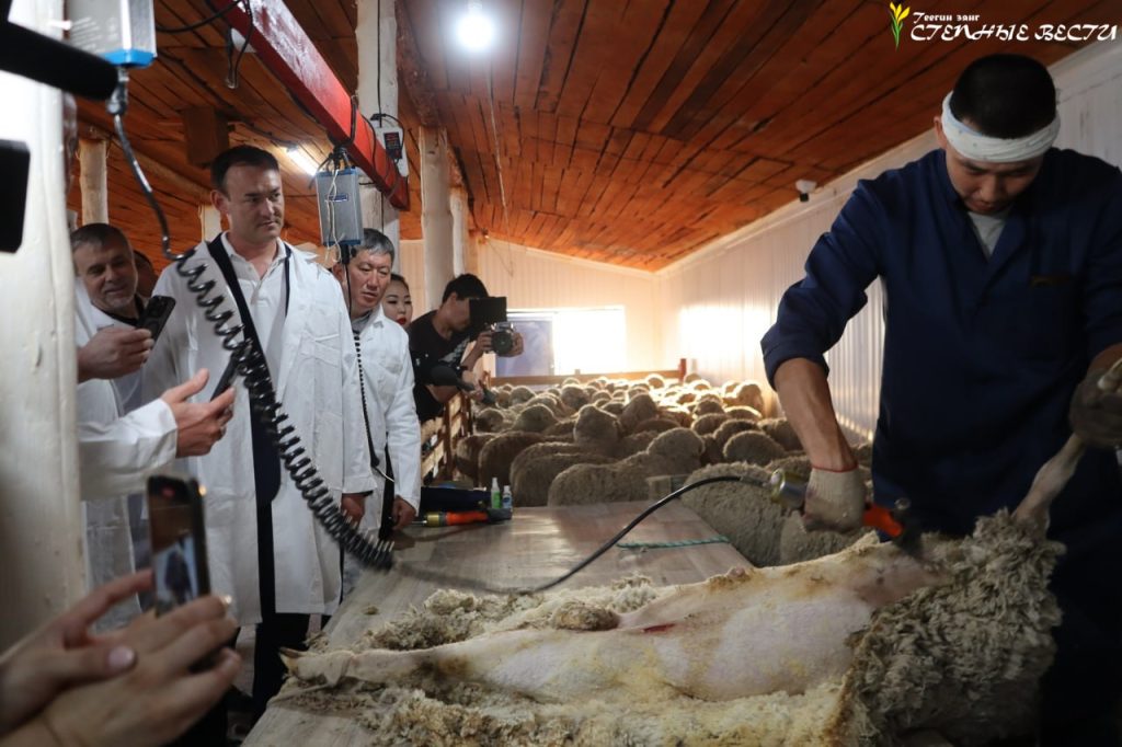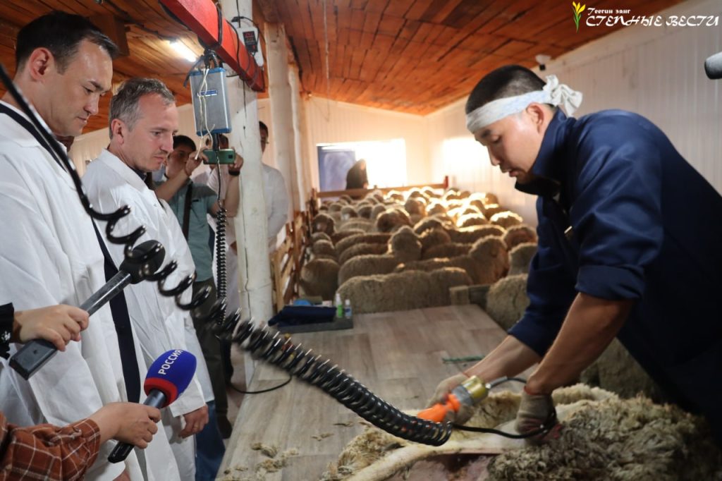 Вместе с исполняющим обязанности министра сельского хозяйства региона Тимуром Гаваевым и вице-премьером Правительства Калмыкии Очиром Джамбиновым гости ознакомились с производственными мощностями откормочного комплекса, а также посетили пункт стрижки животных. Руководитель хозяйства Арлтан Эрдниев подробно рассказал гостям о технологии производственного процесса. В беседе обсуждались вопросы развития отрасли и необходимые меры государственной поддержки для улучшения ситуации в сфере производства и обработки шерсти.