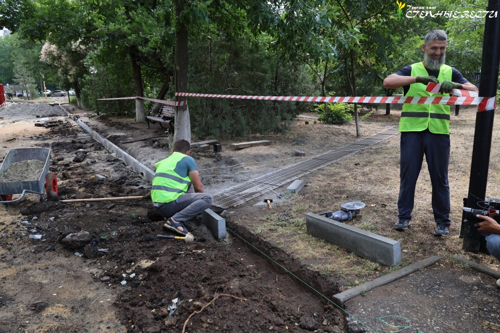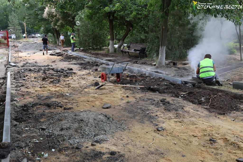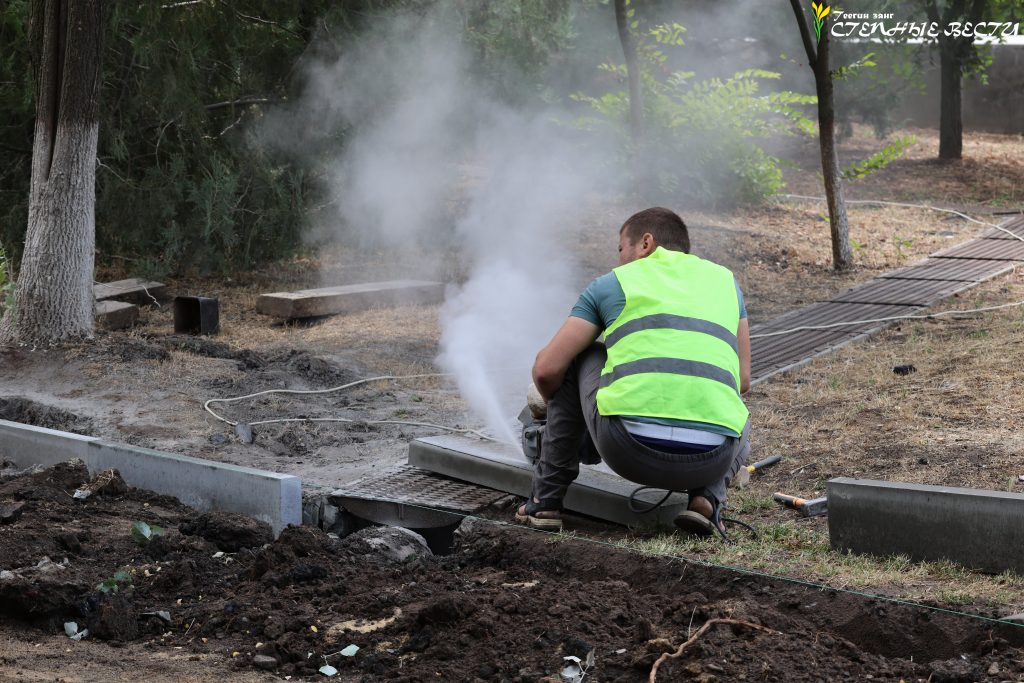 «На этом участке достаточно большой пешеходный трафик. Здесь проводится замена плиточного покрытия. Контракт заключен в начале июня, срок исполнения – 15 августа, но мы планируем сдать объект до конца июля, 20 процентов работ уже выполнили», – сообщил представитель подрядной организации ООО «Строй Гарант» Арслан Харцхаев.