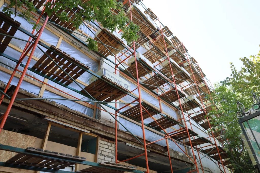 «Выполнено порядка пятидесяти процентов работ. Это замена пожарной сигнализации, замена водоснабжения, канализации и всего комплекса отопления. Производятся отделочные работы, усиление фасада здания. В планах замена лифтового оборудования и благоустройство, замена кровли и остекление», – сказал генеральный директор подрядной организации Олег Гусев.