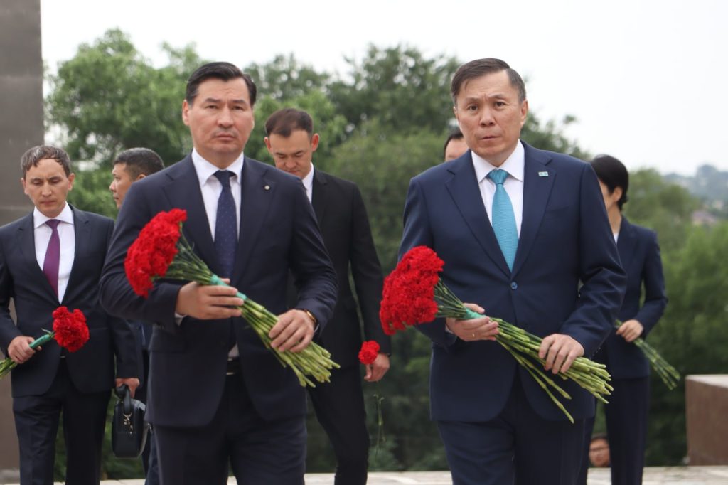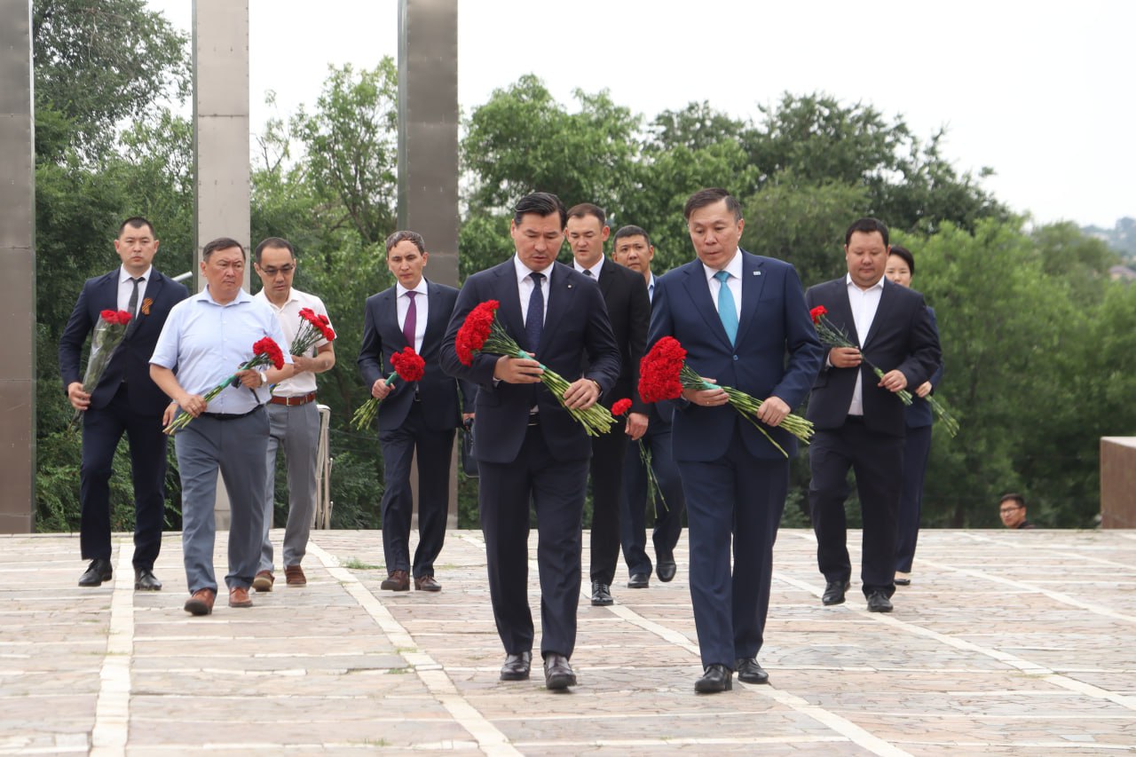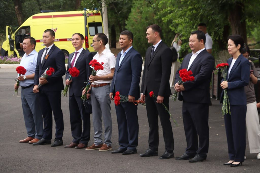 Участники мероприятия почтили память погибших героев минутой молчания. Бату Хасиков и Канат Хасенов также возложили цветы к памятнику Герою Советского Союза, генерал-лейтенанту Басану Бадьминовичу Городовикову. Гости республики узнали о его славном боевом пути и роли в истории Калмыкии.