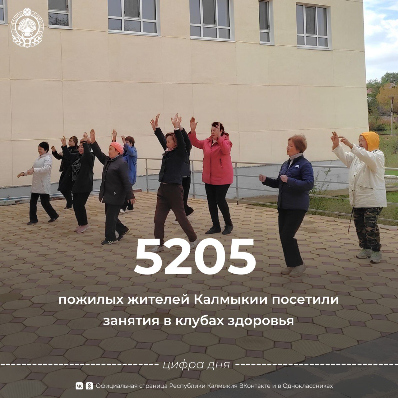 Более 5 тысяч пожилых граждан Калмыкии приняли участие в оздоровительных мероприятиях, организованных клубами здоровья. Таковы данные правительства региона за последние пять лет. За это время было проведено свыше 4 тысяч занятий, которые включают в себя физические упражнения на свежем воздухе в парках и на спортивных площадках, а также занятия в социальных и медицинских учреждениях.