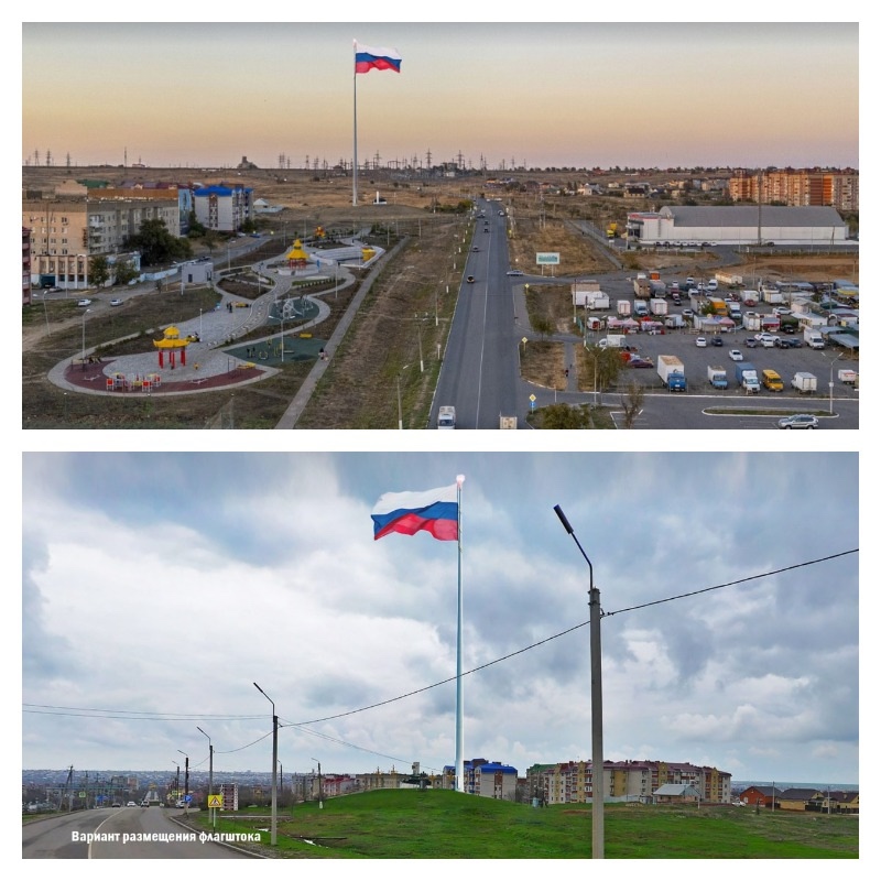 «Рассматривалось несколько локаций для проекта. Это место – въезд в Элисту со стороны Волгограда, поэтому мы хотели сформировать здесь своеобразные ворота, чтобы сразу его обозначить. К памятнику часто приходят жители, приносят цветы, венки, и идея «усилить» значимость локации государственным флагом многим пришлась по душе. Флаг будет просматриваться практически со всех сторон города. Флагшток уже запущен в производство, а сама площадка активно готовится под его установку», – сказал замглавы администрации муниципалитета Сергей Хасиков.