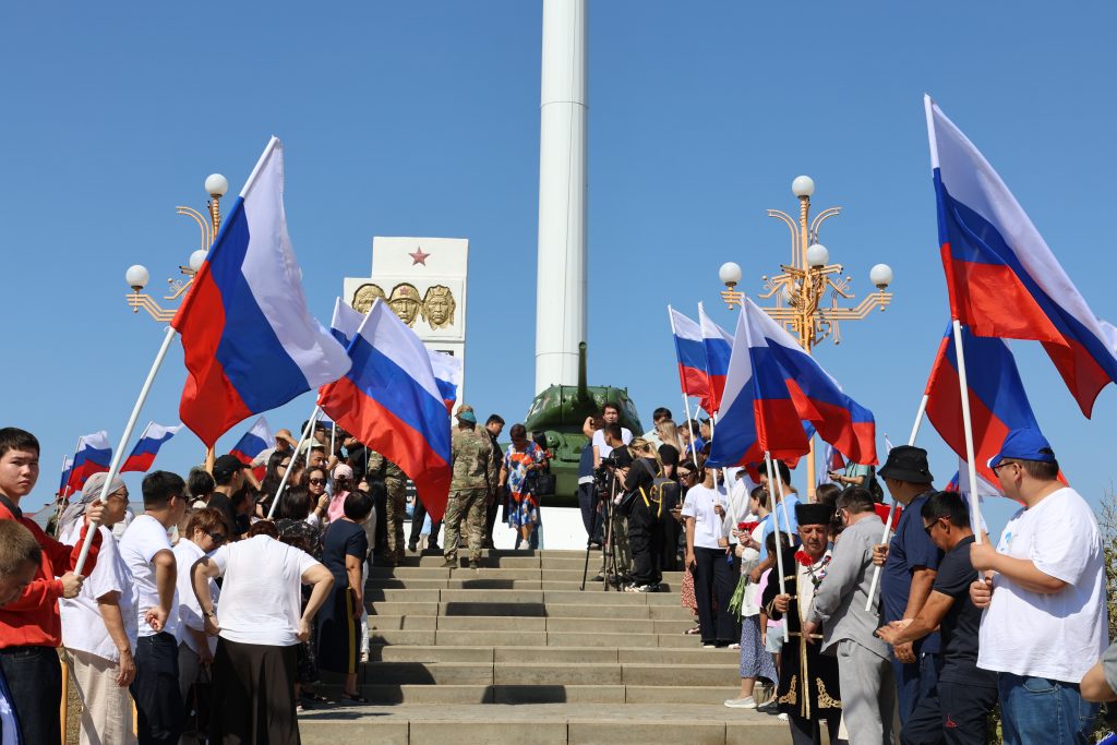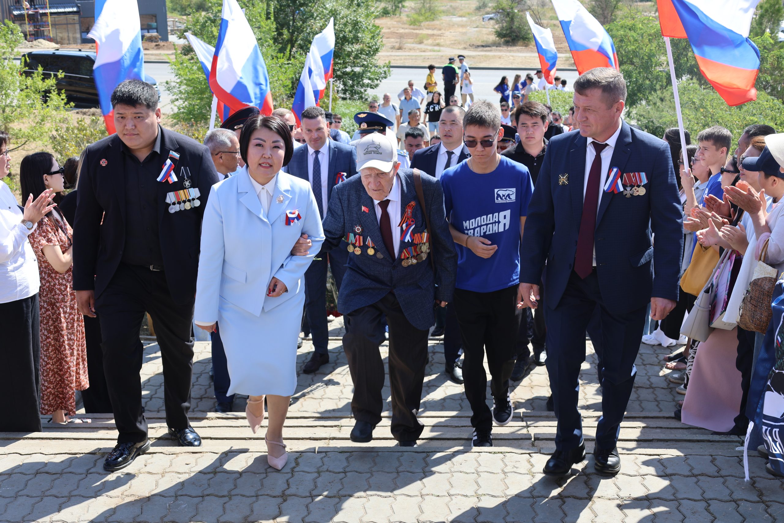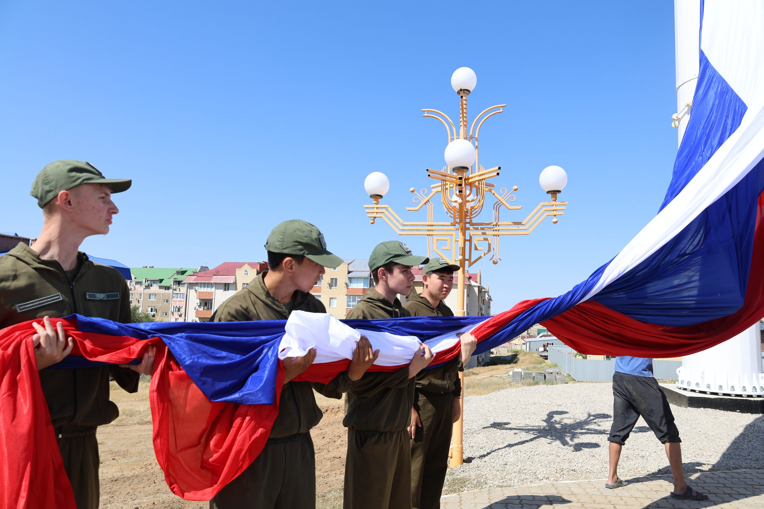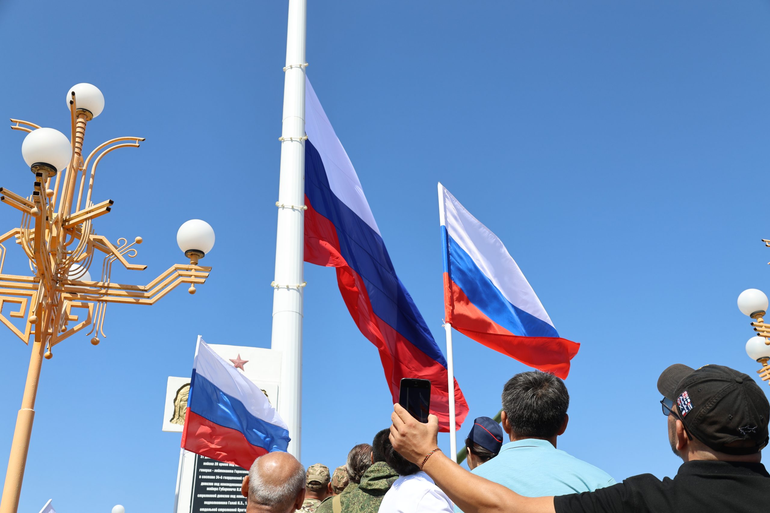 В значимом событии участвовали председатель правительства республики Гиляна Босхомджиева, спикер Народного Хурала (Парламента) Калмыкии Артем Михайлов, участники специальной военной операции, представители органов власти, детские и молодежные организации, общественность. По сигналу ветерана Великой Отечественной войны Петра Леонтьева под звуки гимна страны подняли флаг Российской Федерации.