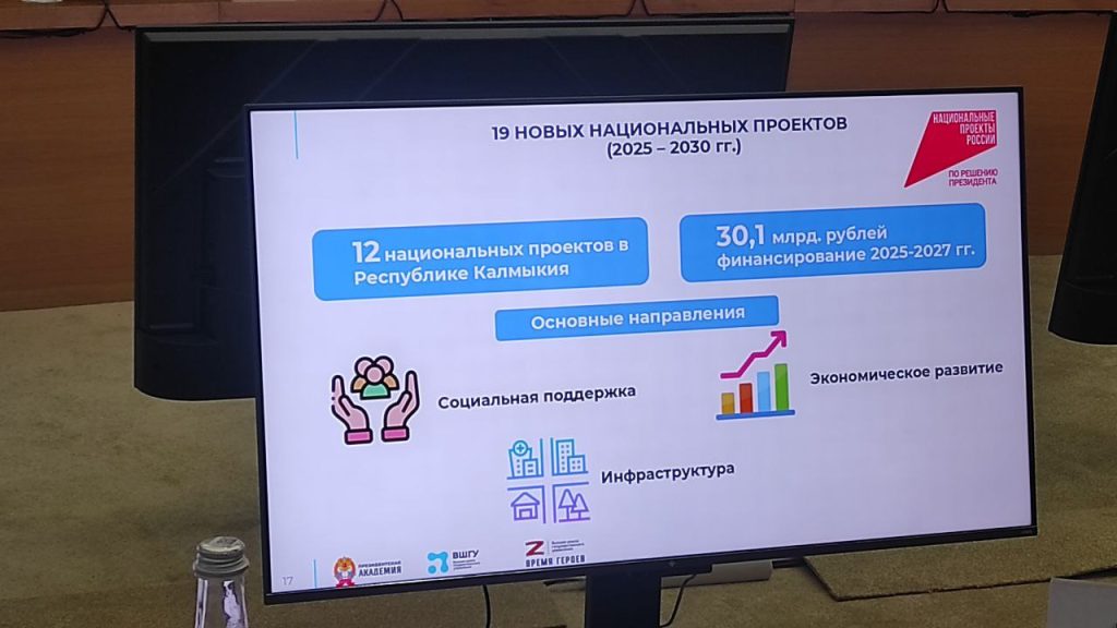 Босхомджиева уточнила, что в рамках реализации нацпроектов на развитие и поддержку республики во всех сферах за последние пять лет в Калмыкию направлено более 30 млрд рублей. За счет этих средств возводятся новые школы и детсады, медицинские учреждения, социальные, культурные и спортивные объекты, ремонтируются дороги, системы водоснабжения, благоустроены общественные пространства. На реализацию двенадцати новых национальных проектов планируется направить еще около 30 млрд рублей.