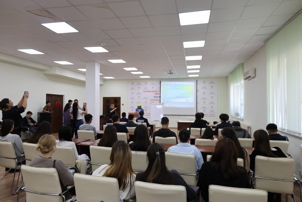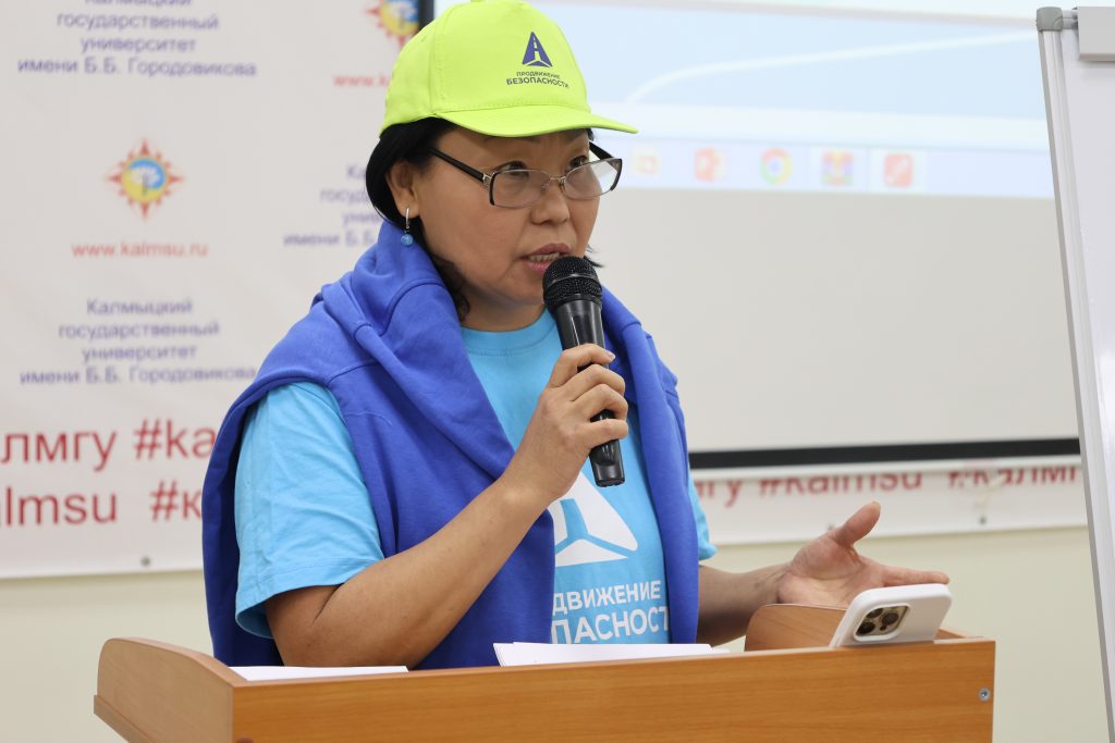 Представители проекта побывали и в Калмыцком государственном университете имени Б.Б. Городовикова. Студенты посмотрели информативный фильм, после чего поучаствовали в творческом конкурсе и проверили знания правил дорожного движения. Каждый участник получил полезные подарки для обеспечения безопасности на дороге – брелоки и шнурки со светоотражателями.