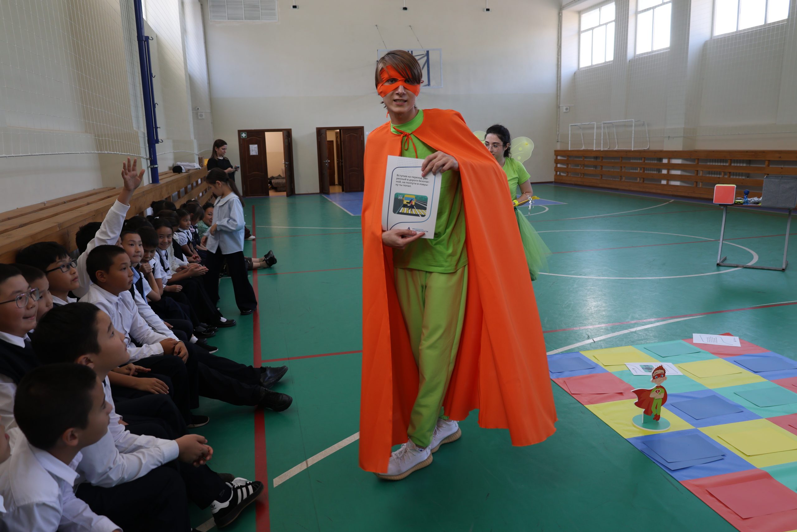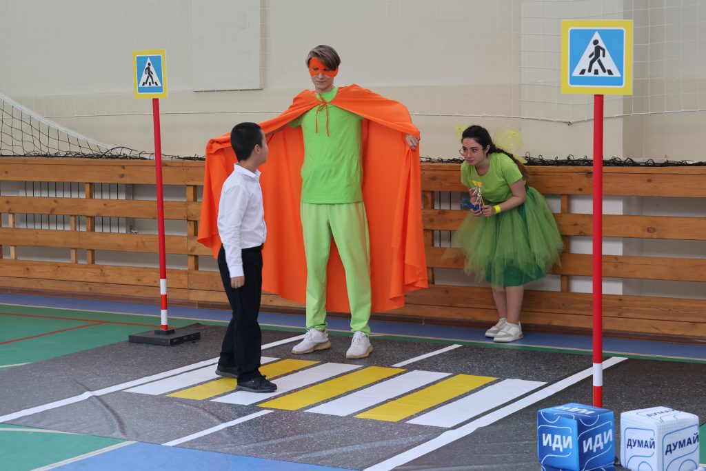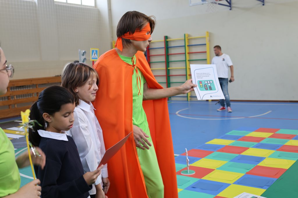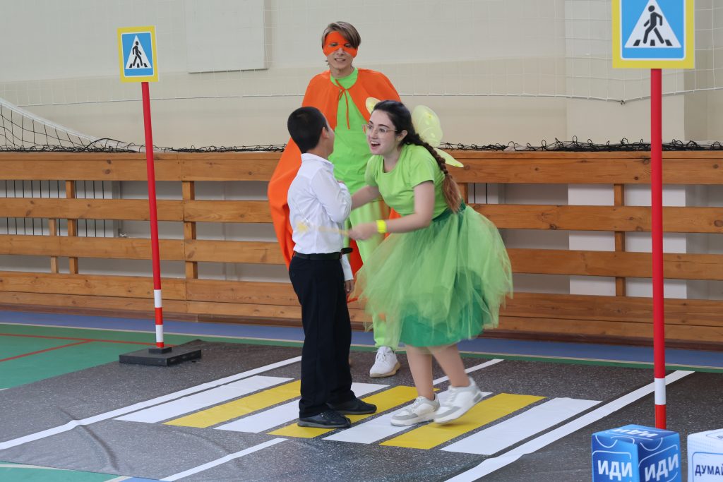 В Элистинской школе № 4 консультанты-артисты вместе с учениками младших классов в игровой форме изучали правила перехода нерегулируемых и регулируемых пешеходных переходов, а подростки 11—14 лет участвовали в серии экспериментов, наглядно показывающих правила безопасного поведения на дорогах.