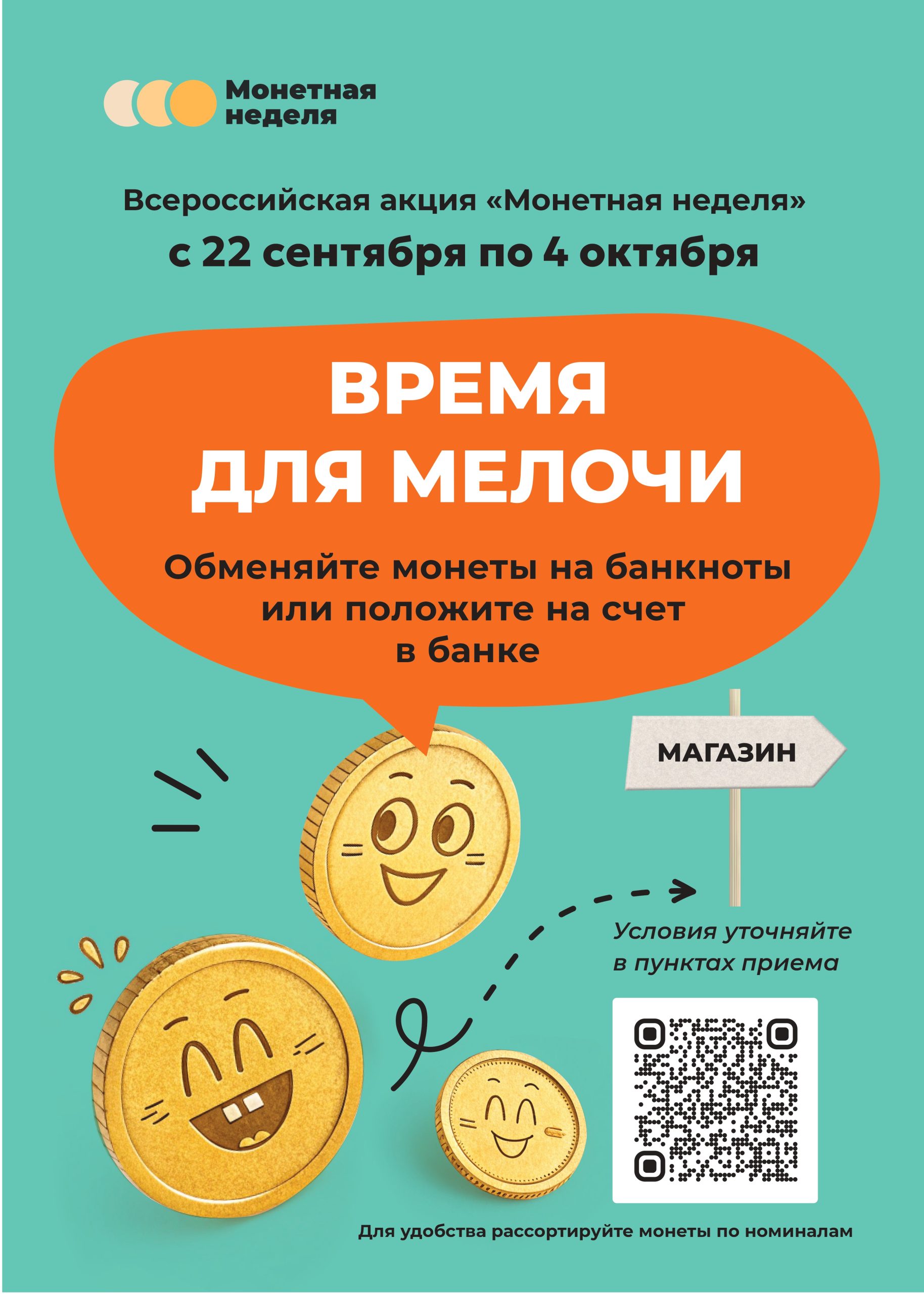 До 4 октября жители смогут обменять скопившуюся мелочь на бумажные купюры или зачислить сумму на счет. В банки и крупные супермаркеты региона можно приносить любые монеты, выпущенные с 1997 года. Адреса пунктов приема и условия обмена – на сайте монетнаянеделя.рф. Для удобства мелочь рекомендуют заранее рассортировать по номиналам.