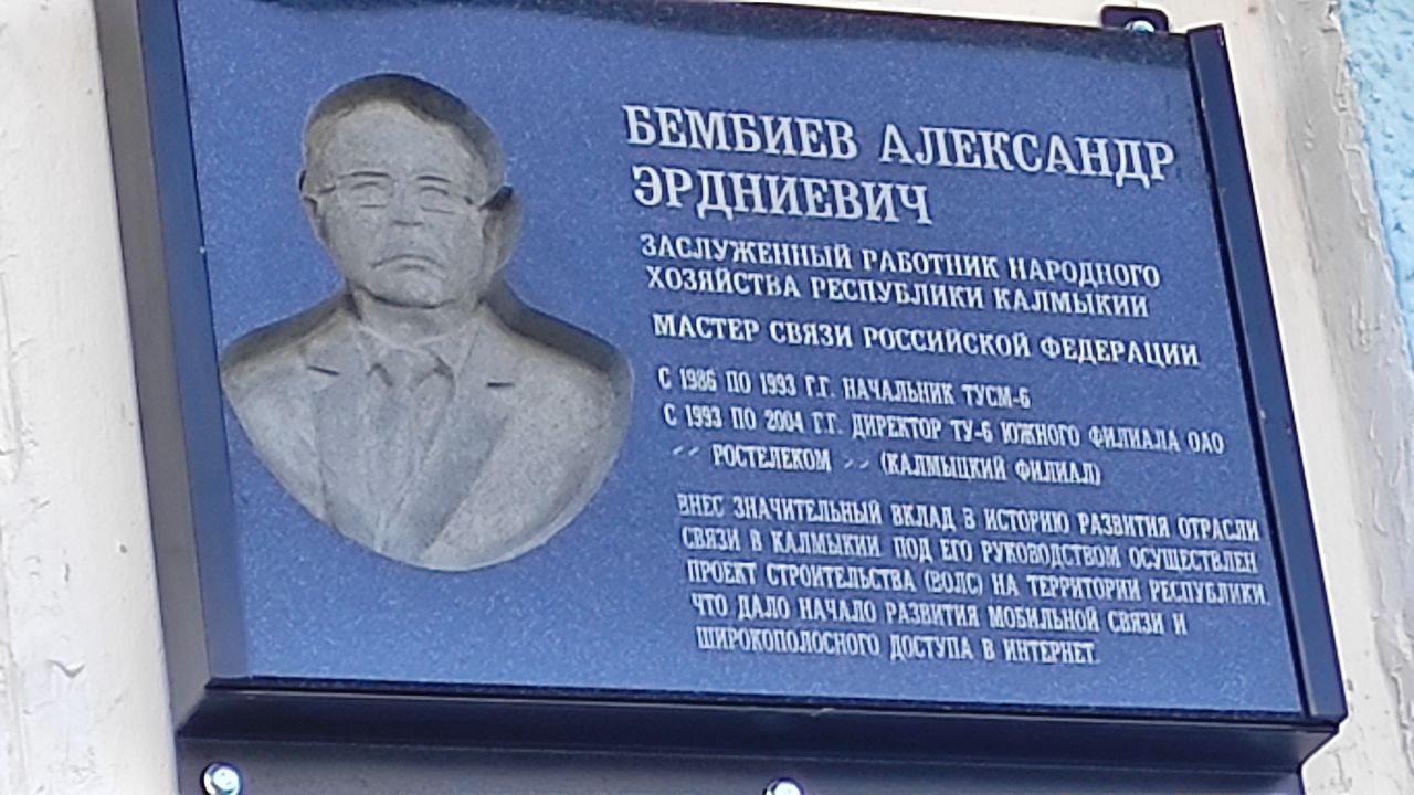 Памятный знак установили на стене главного отделения почтовой связи Элисты как символ уважения, признательности и благодарности человеку, внесшему большой вклад в развитие и становление отрасли связи Калмыкии. Начав работу в 1976 году инженером радиорелейного цеха № 1, Бембиев прошел путь до начальника ТУСМ-6 ОАО «Ростелеком» ТЦМС-16. Был руководителем Элистинского централизованного узла электросвязи.