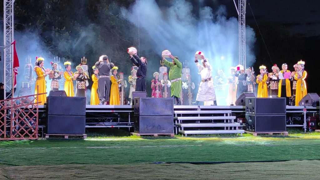 Завершился фестиваль красочным театрализованным прологом и большим гала-концертом. Участникам праздника – представителям братских народов из Монголии, Синьцзян-Уйгурского автономного района Китая, Бурятии и Тывы торжественно вручили белые юрты – символы фестиваля искусств, а также золотую пайцзу – верительную грамоту, символизирующую единство и дружбу наших народов. А ярким аккордом стало совместное выступление профессиональных артистов и зрителей. Они исполнили зажигательный калмыцкий танец «Чичердык».