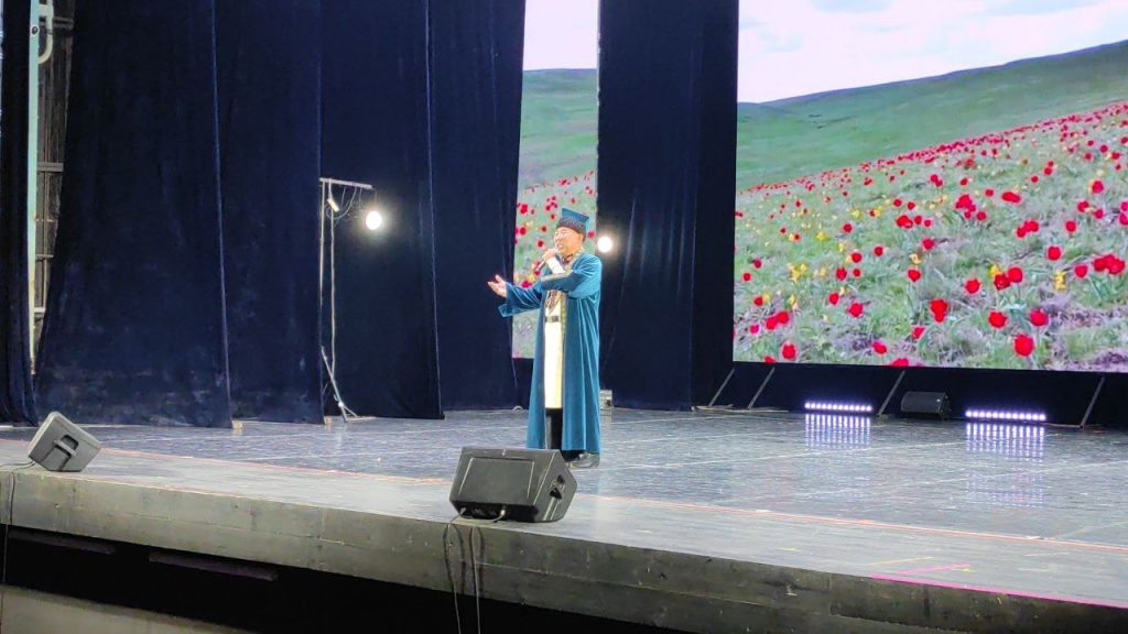 На сцене выступили такие известные артисты, как заслуженные деятели искусств Калмыкии Эдуард Бурлаков, Диана Босхомджиева, Анна Очкаева и другие. Завершилось мероприятие знаменитым танцем «Чичердык», исполненным артистами государственного академического ансамбля песни и танца Калмыкии «Тюльпан».