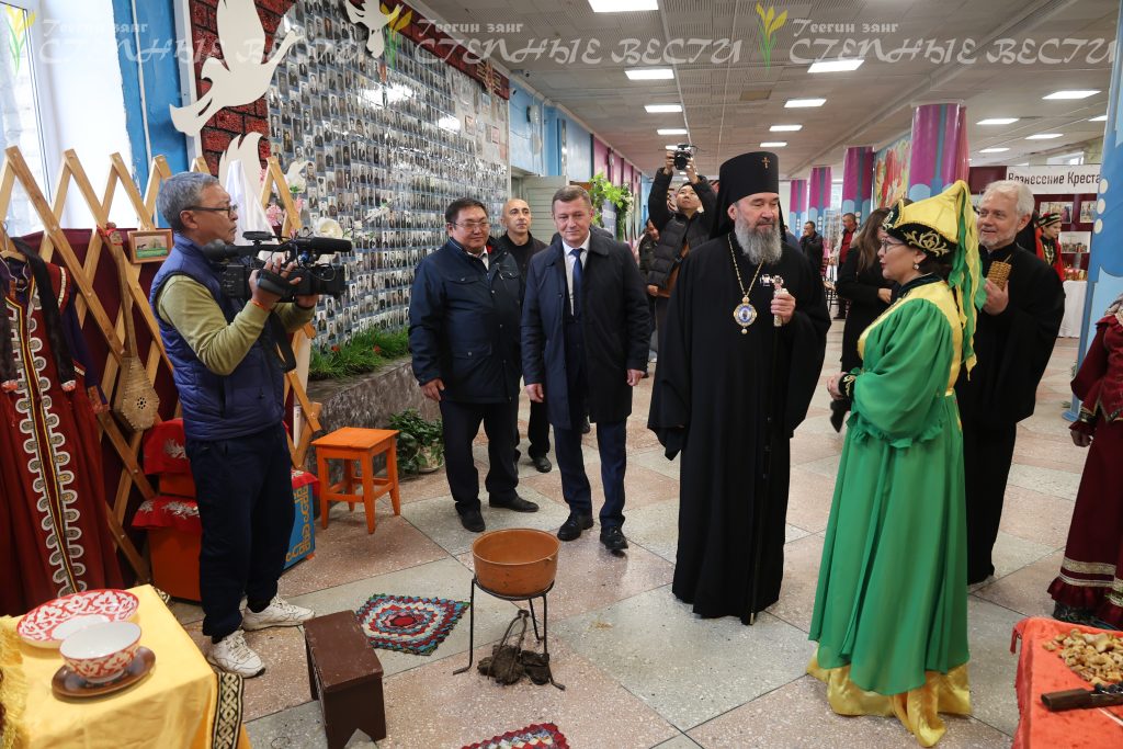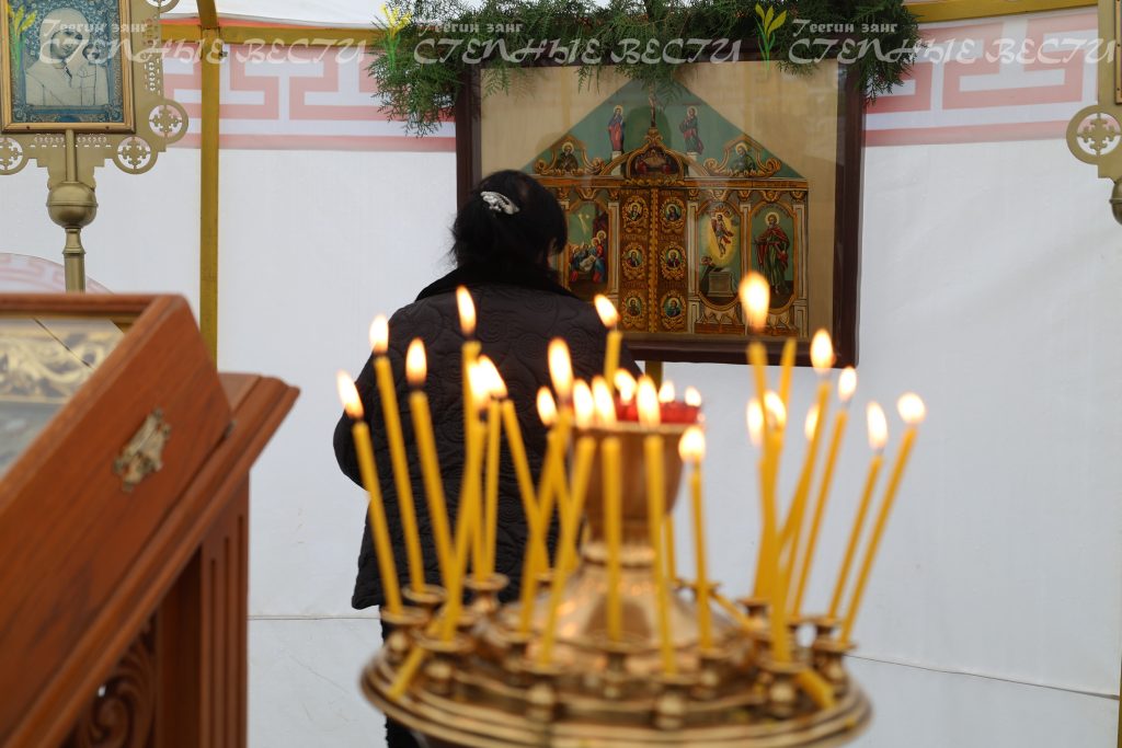 Благодаря художнице Светлане Санджиевой, верующие могли увидеть воссозданное ею изображение иконостаса первого походного храма. «Вообще мы должны помнить, что монголы стали христианами задолго до русских. Еще в XI веке было известно о могучем племени караитов, принявшем крещение. В окружении хана Батыя, обосновавшегося на берегах Волги, было много христиан, а его сын – царевич Сартак – был крещен и дружен с благоверным князем Александром Невским. То есть калмыки много веков знают христианство и поэтому естественным можно считать то, что ровно 30 лет назад по просьбе президента Калмыкии Кирсана Николаевича Илюмжинова и благословению Святейшего Патриарха Алексия II была образована отдельная Элистинская и Калмыцкая епархия. В это же время началось строительство нового храма в селе Приютное вместо бывшего здесь и разрушенного в советское время. Пусть эти памятные даты будут в наших сердцах и умах», – отметил архиерей.