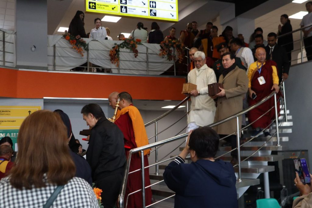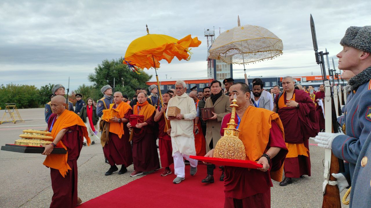 В Элистинском аэропорту состоялась торжественная церемония проводов бесценных реликвий Будды Шакьямуни. Святыни, прибывшие на специально оборудованном транспорте в сопровождении Главы Калмыкии Бату Хасикова и шаджин-ламы геше Тензина Чойдака, привлекли сотни жителей и гостей столицы, желающих проводить их в путь. На взлетной полосе у ковровой дорожки, ведущей к самолету, был выстроен почетный караул.