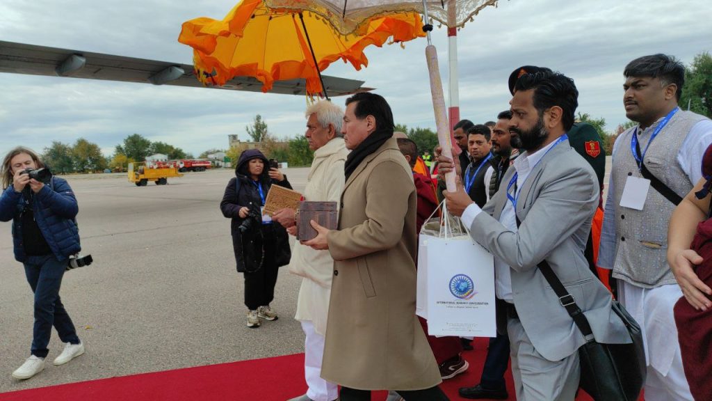 В присутствии монахов реликвии были бережно погружены на борт самолета. Этот трогательный момент вызвал у всех присутствующих глубокое чувство благоговения перед наследием Будды Шакьямуни.