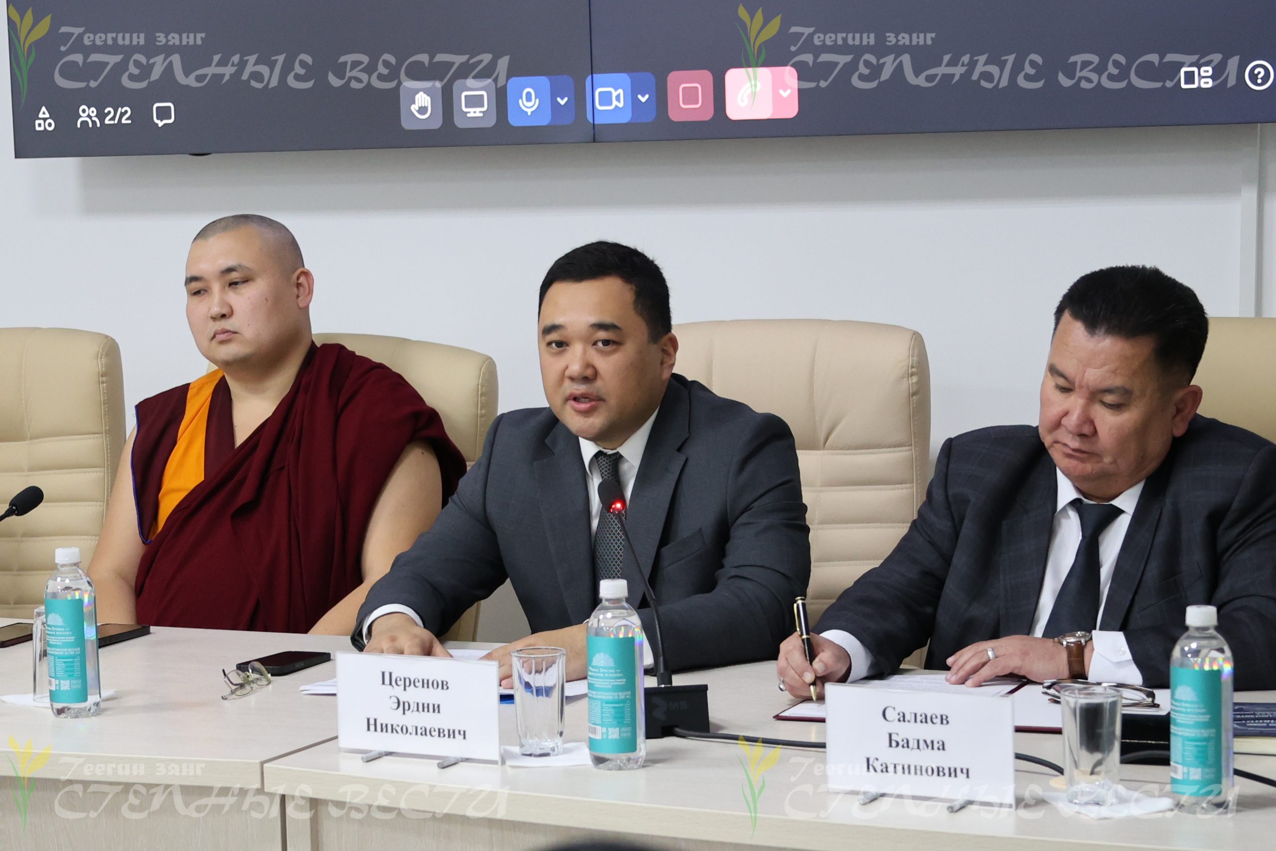 На пресс-конференции по итогам форума в качестве спикеров выступили первый заместитель председателя правительства региона Эрдни Церенов, и.о. вице-премьера — постоянного представителя РК при Президенте РФ Герензал Мучкинова, председатель центрального духовного управления буддистов Росссии геше Йонтен, ректор КалмГУ им. Б.Б. Городовикова Бадма Салаев, советник главы республики Геннадий Корнеев, заместитель главы администрации Элисты Дмитрий Довгополов, а также волонтер, ученица 11 класса Элистинской многопрофильной гимназии Цагана Салкина.