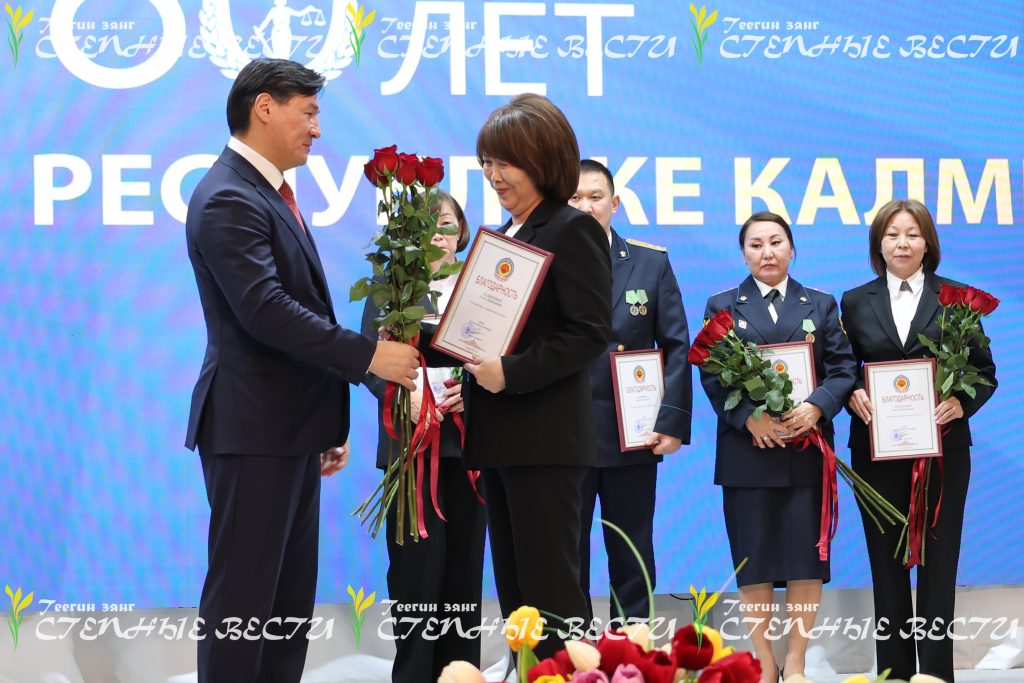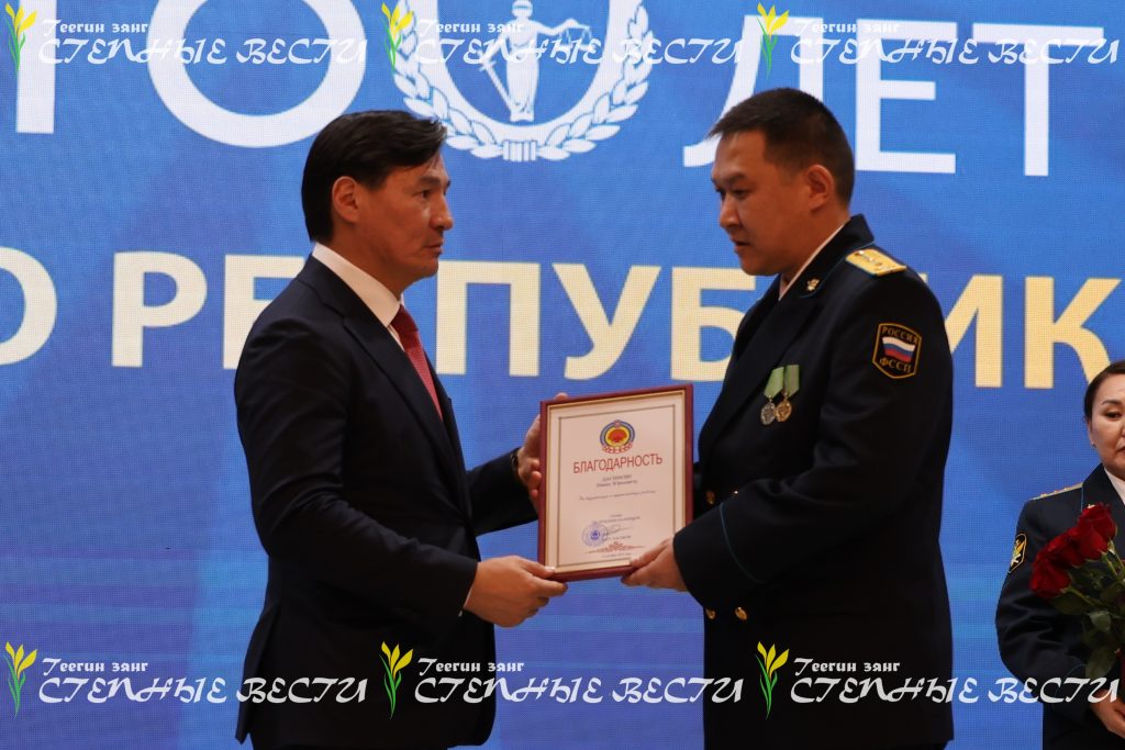 – Ваша служба сыграла значимую роль в развитии единой системы правосудия. В наше время служба судебных приставов – это надежная и современная структура, без которой невозможно представить эффективное функционирование судебной системы. От работы ведомства также зависит наполняемость регионального бюджета и решение важнейших экономических и социальных задач. Служба судебных приставов наряду с налоговыми и таможенными органами входит в тройку лидеров по пополнению консолидированного бюджета Российской Федерации, – отметил Глава Калмыкии Бату Хасиков и поздравил личный состав и ветеранов службы за добросовестную работу в интересах государства и граждан. Он также вручил благодарности Главы Калмыкии ряду сотрудников.