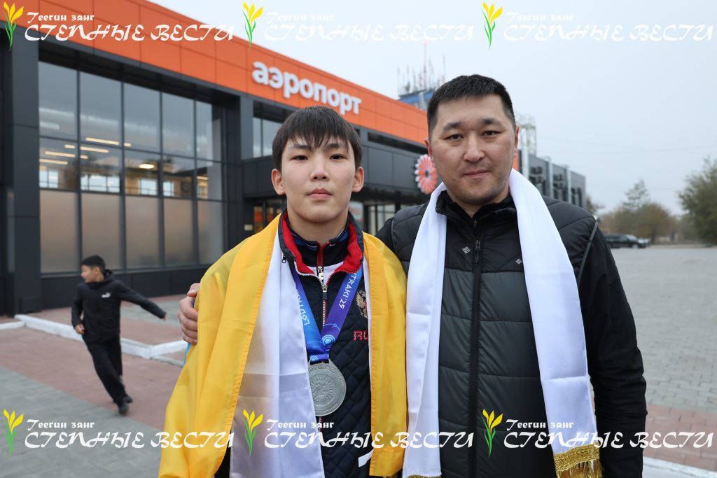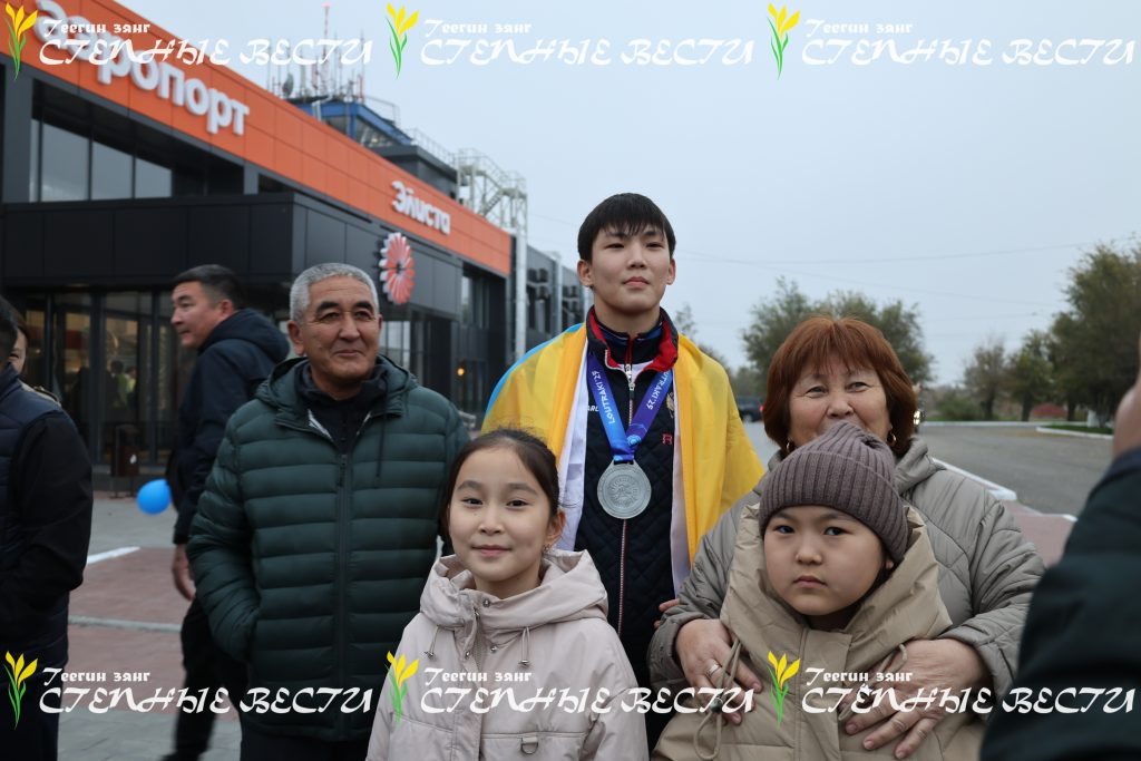 Сегодня в аэропорту Элисты торжественно встретили серебряного призера первенства мира по спортивной борьбе панкратион Адьяна Нохаева.