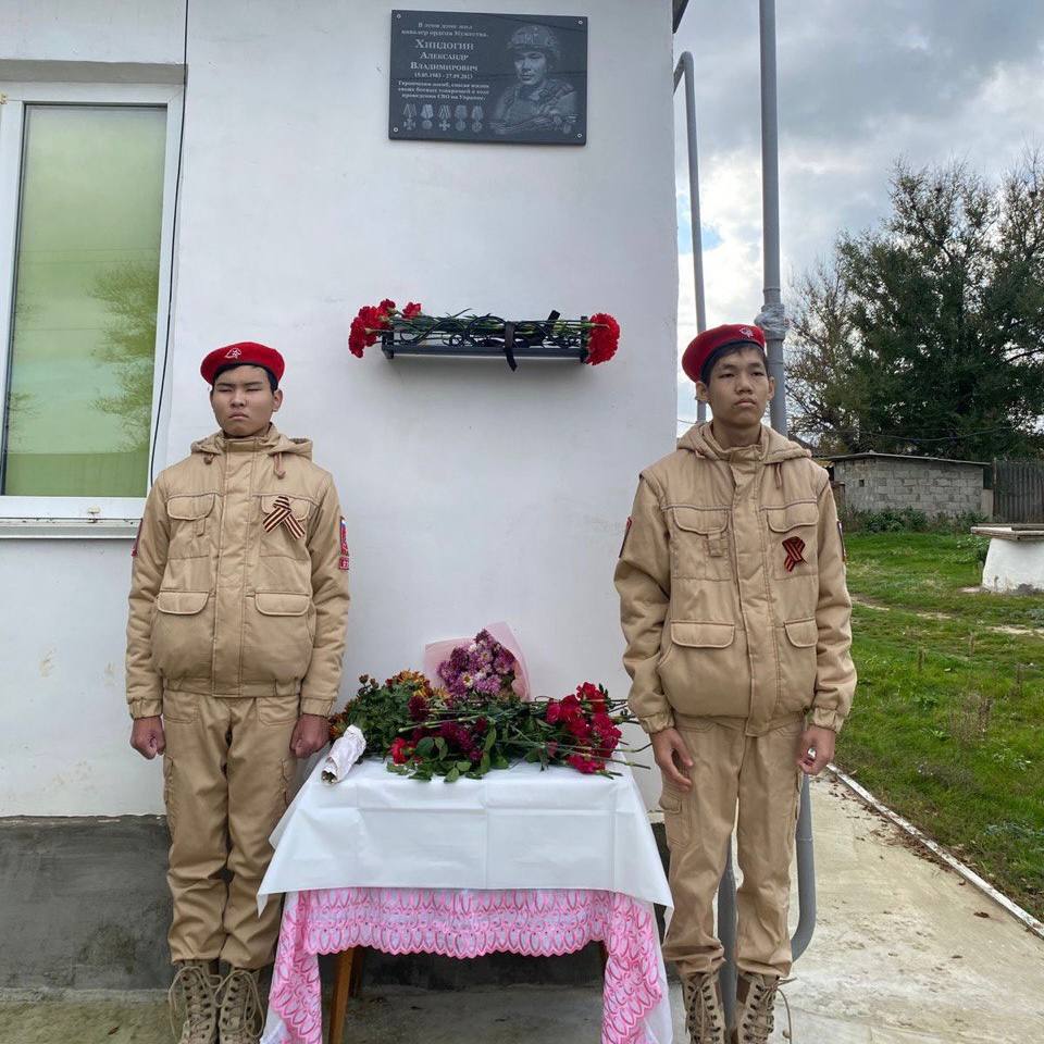 В поселке Оргакин Ики-Бурульского района одну из улиц назвали именем Александра Хиндогина, а на доме, где проживал участник спецоперации, установили мемориальную доску.