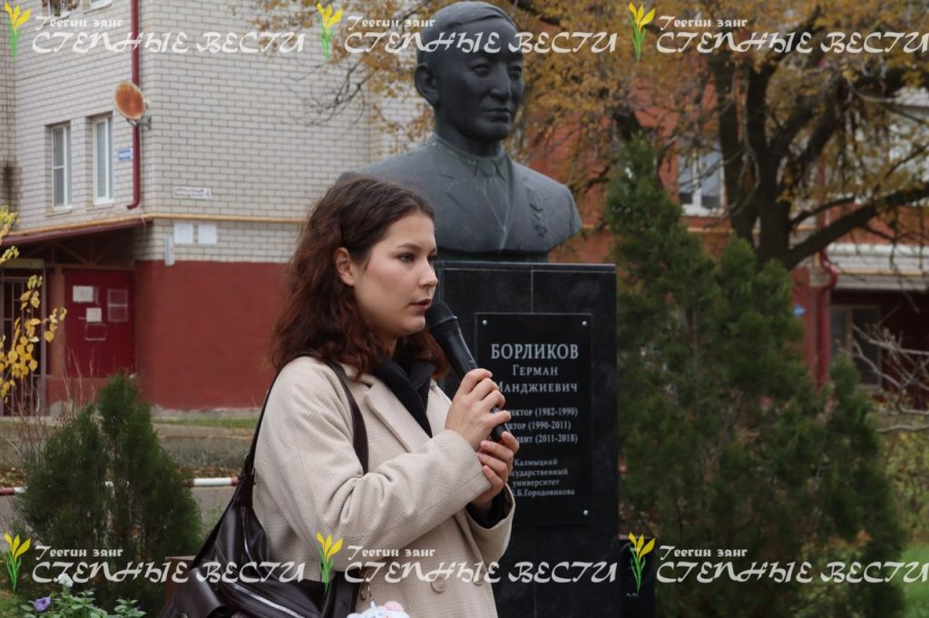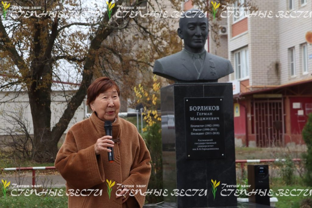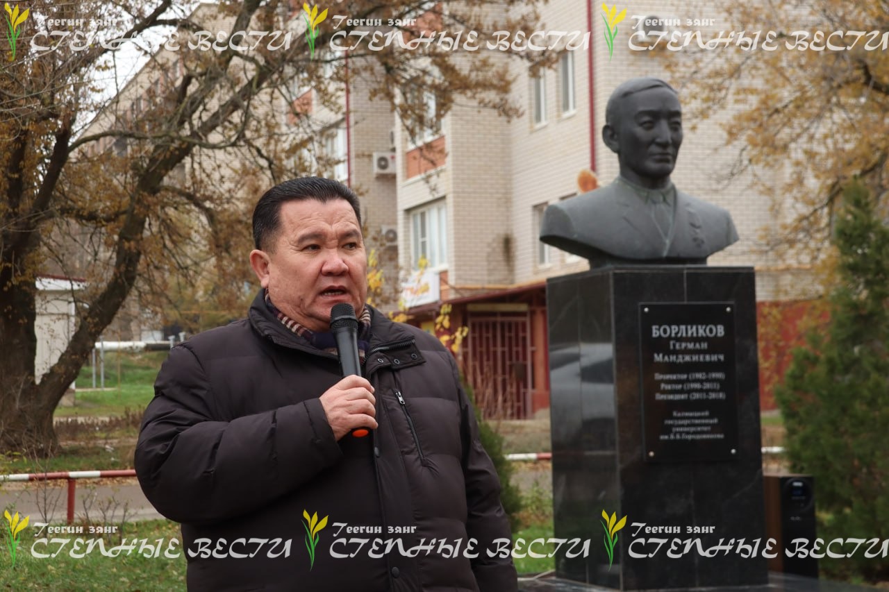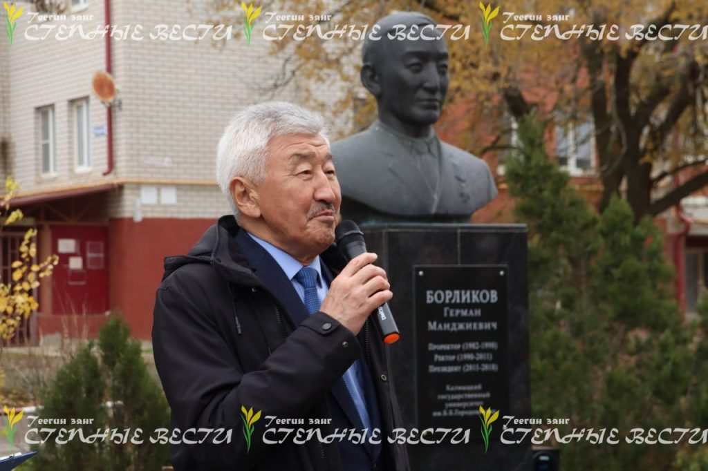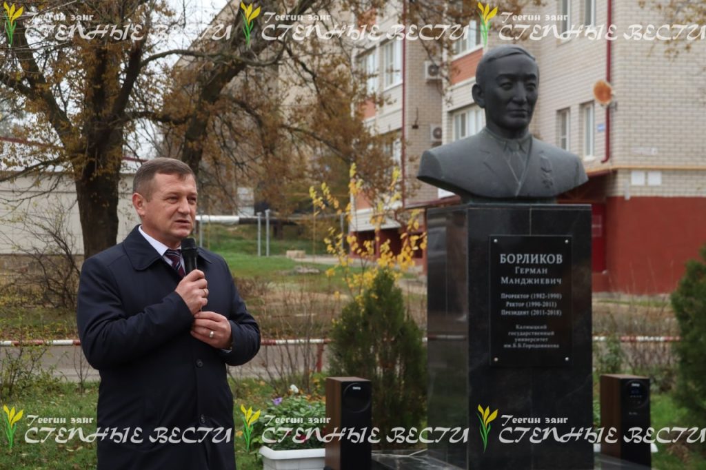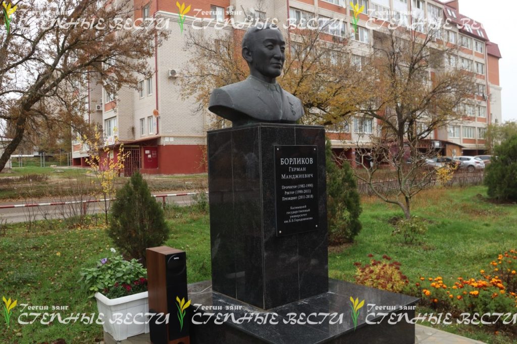 В дни празднования 55-летнего юбилея Калмыцкого государственного университета преподаватели и студенты почтили память ректора, первого президента вуза, профессора, доктора педагогических наук Германа Борликова. Его бюст находится на площадке у седьмого корпуса КалмГУ в пятом микрорайоне Элисты. Того самого корпуса, к строительству которого он приложил немало усилий, как и к созданию нового студгородка в этом же районе.
