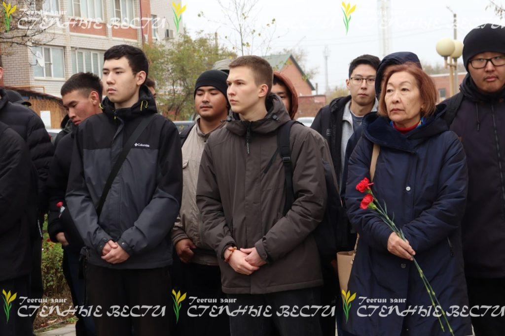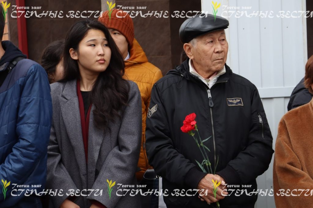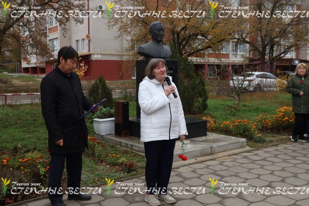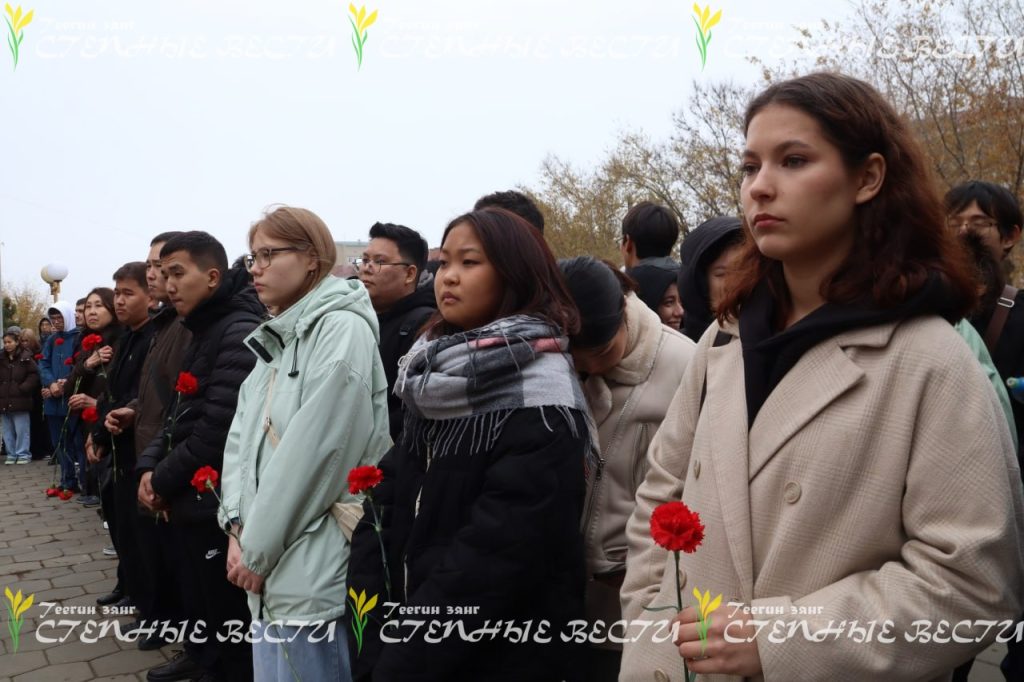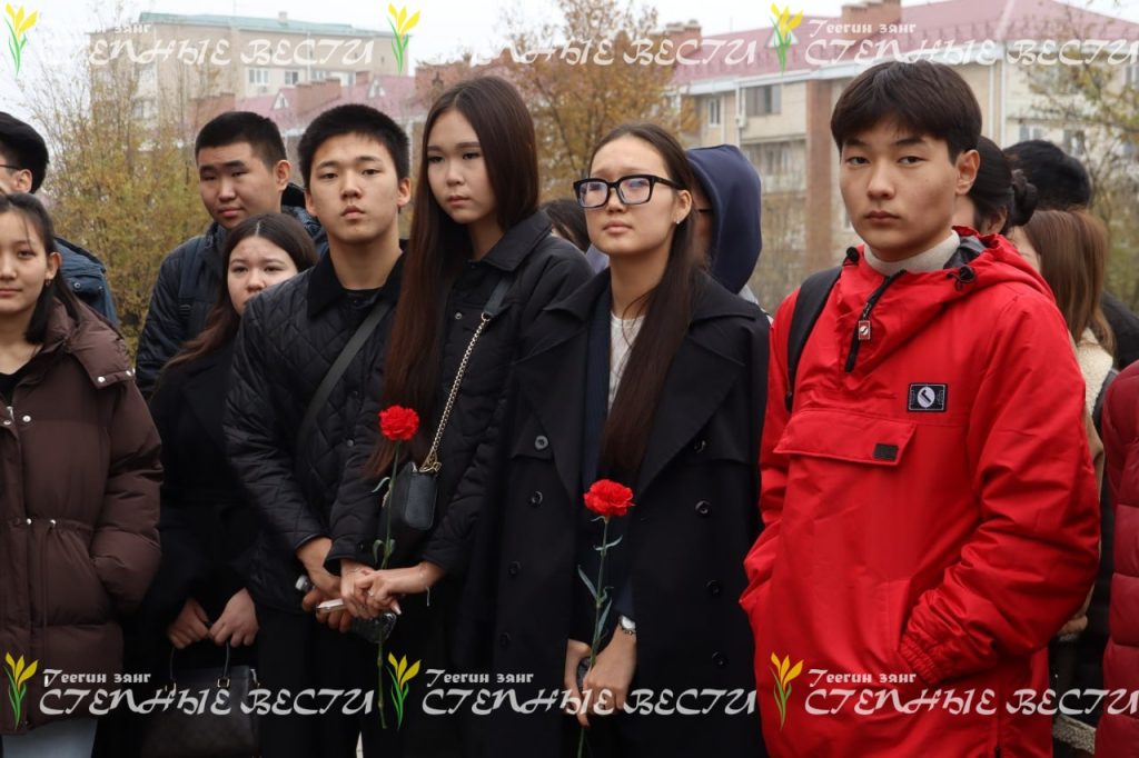 После митинга преподаватели и студенты возложили цветы к бюсту Германа Манджиевича Борликова.