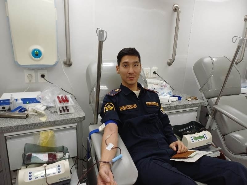 Старший инспектор Лаганского межмуниципального филиала УИИ, лейтенант внутренней службы Николай Очир-Горяев сдал кровь в 25-й раз.