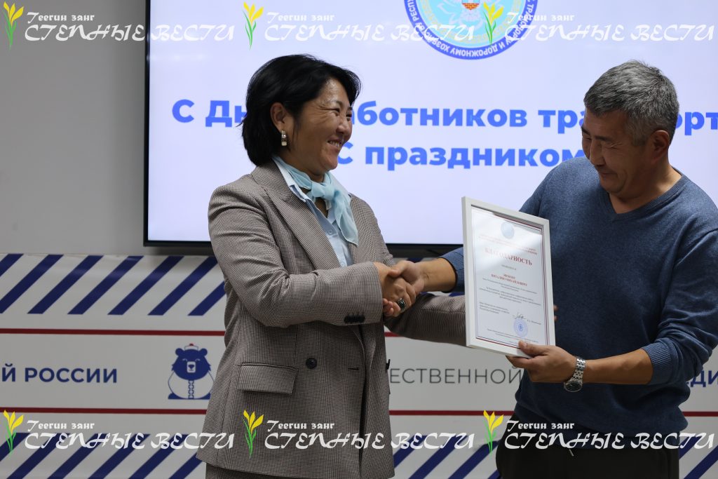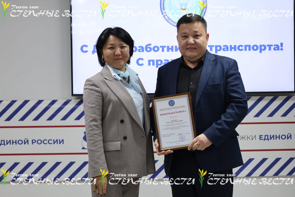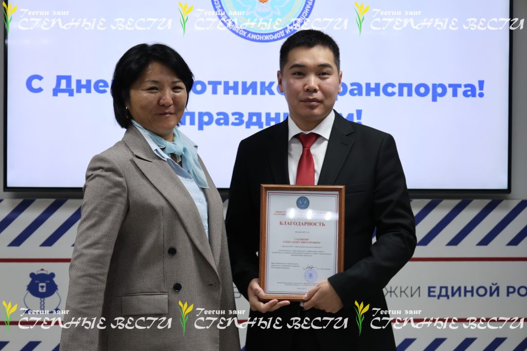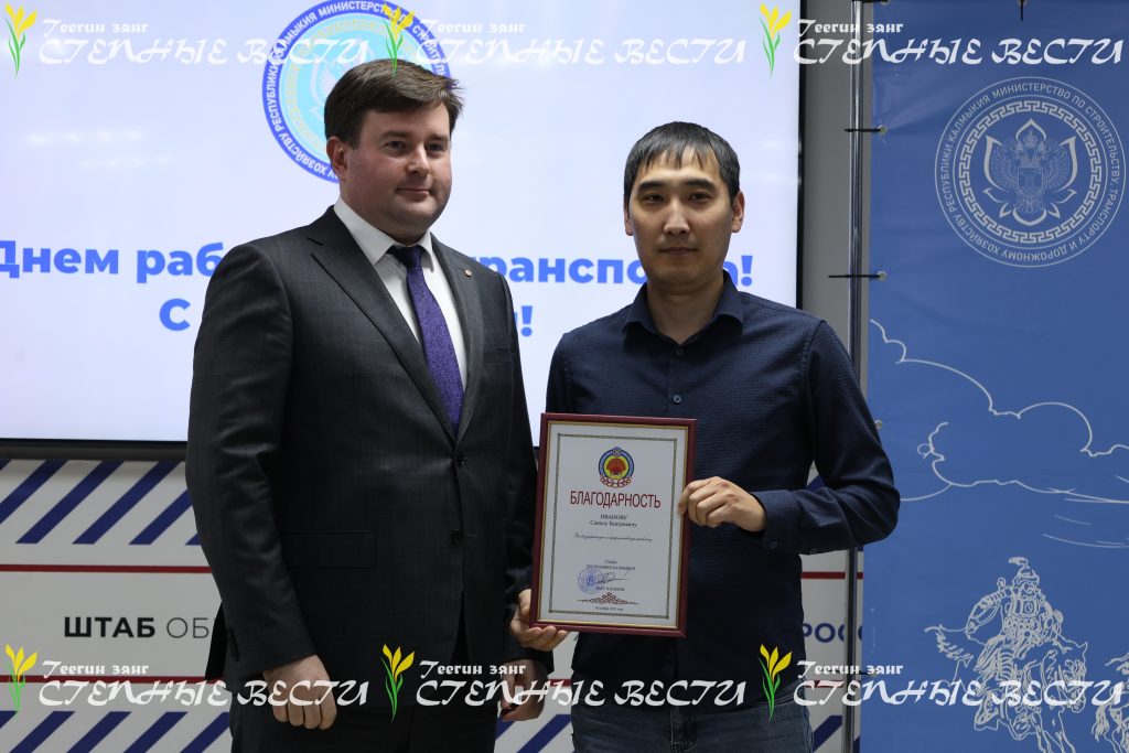 Кроме того, на встрече особо отметили многолетнюю работу начальника железнодорожной станции «Элиста» Джангара Обушаева. За упорный труд на благо региона – а это 35 лет в железнодорожной отрасли – ему вручили почетное звание «Заслуженный работник народного хозяйства Калмыкии».
