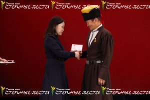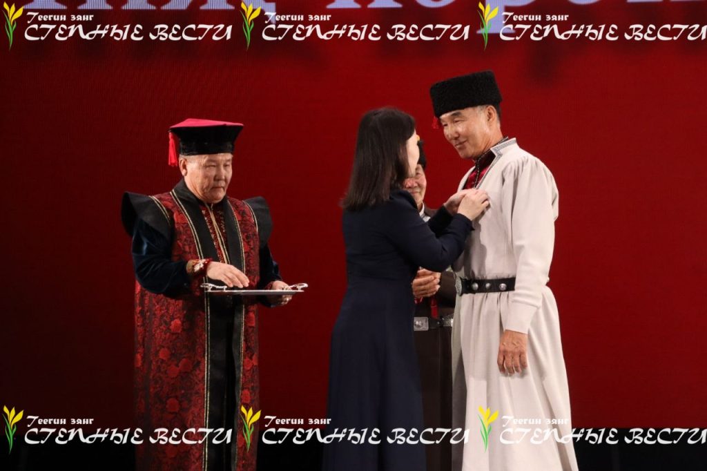 Указом Главы РК Бату Хасикова отмечены особые заслуги в сохранении и развитии калмыцкого фольклора Дорджи Нандышева и Баатра Лиджи-Горяева. Награду на сцене Калмгосфилармонии вручила зампредседателя правительства – министр соцразвития, труда и занятости Марина Ользятиева.