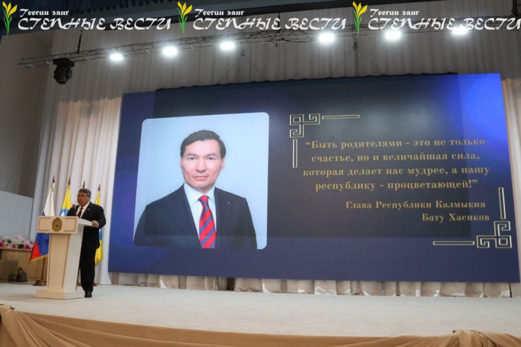 Приветственный адрес Бату Хасикова зачитал первый замруководителя администрации Главы РК Савар Тарбаев. «Наш народ издревле с большим почтением и трепетом относится к женщинам, слагая легенды о своих матерях и женах, воспевая их в песнях. Каждая из вас – хранительница домашнего очага, источник тепла и заботы для детей и близких. Ваши терпение, мудрость и бесконечная любовь – это те столпы, на которых строится не только семья, но и наше общество. Материнская любовь вдохновляет, окрыляет, питает душу и характер», – отметил в своем поздравлении Глава Калмыкии.