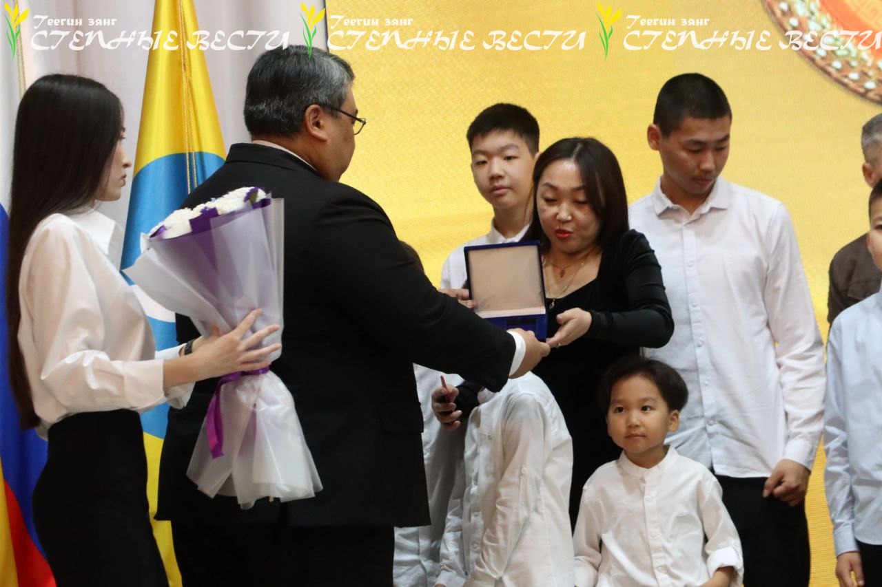 Савар Тарбаев наградил одиннадцать многодетных семей Калмыкии региональным знаком отличия «За заслуги в воспитании детей». Среди них были и семьи участников специальной военной операции.