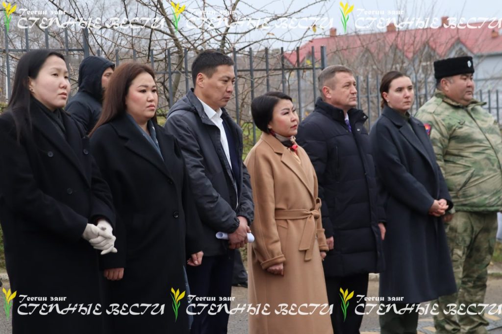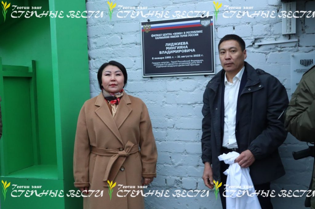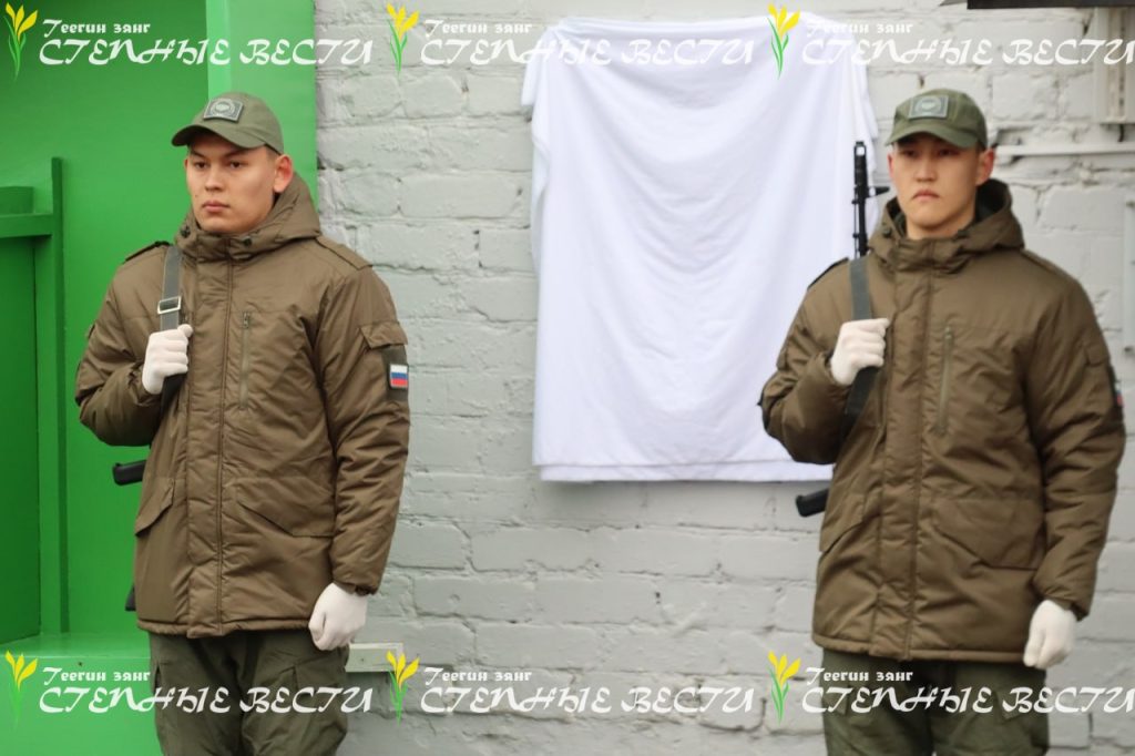 Почетное право открыть мемориальную доску, увековечивающую память Героя России, было предоставлено Гиляне Босхомджиевой и двоюродному брату Мингияна Мергену Ходжаеву.