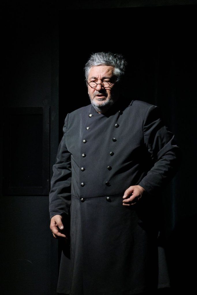 Вот он счастливый отец, немного суетливый и ослепленный этим счастьем, ведь разумная красивая дочь «вся в покойницу мать». Вот он убитый известием об увозе гусаром Минским (актер Андрей Швечиков) своей Дуни (актриса Камила Хван), едет за своей заблудшей овечкой, но что ждет его… Любимая дочь в ужасе от его появления, она не бежит за безжалостно выдворенным отцом. Он не нужен своей дочери, ей не нужна его любовь и забота… И уже другой человек, надломленный, бредет сквозь пургу, бормоча в беспамятстве: «Мчатся тучи, вьются тучи; / Невидимкою луна / Освещает снег летучий; / Мутно небо, ночь мутна. Мчатся бесы рой за роем / В беспредельной вышине, /Визгом жалобным и воем / Надрывая сердце мне».