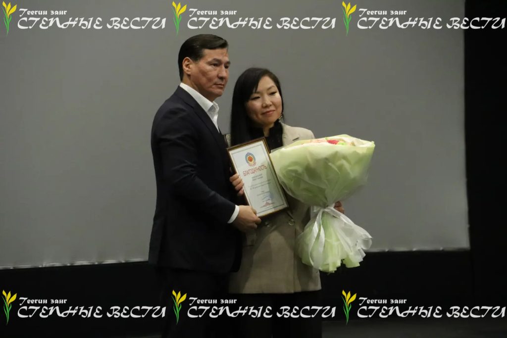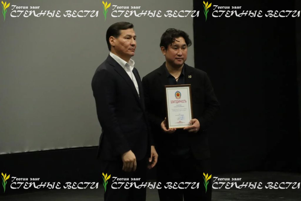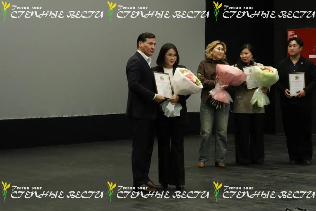 Так, Благодарностью Главы Калмыкии на встрече наградили художественного руководителя Республиканского русского театра драмы и комедии Алексея Сарангова, артистку Национального драматического театра им. Б.Басангова Баиру Манджиеву, заслуженную артистку Калмыкии и индивидуального предпринимателя Эрвену Оргаеву, генерального директора благотворительного фонда патриотических инициатив и содействия добровольчеству «Воин степи» Заяну Абдулову.