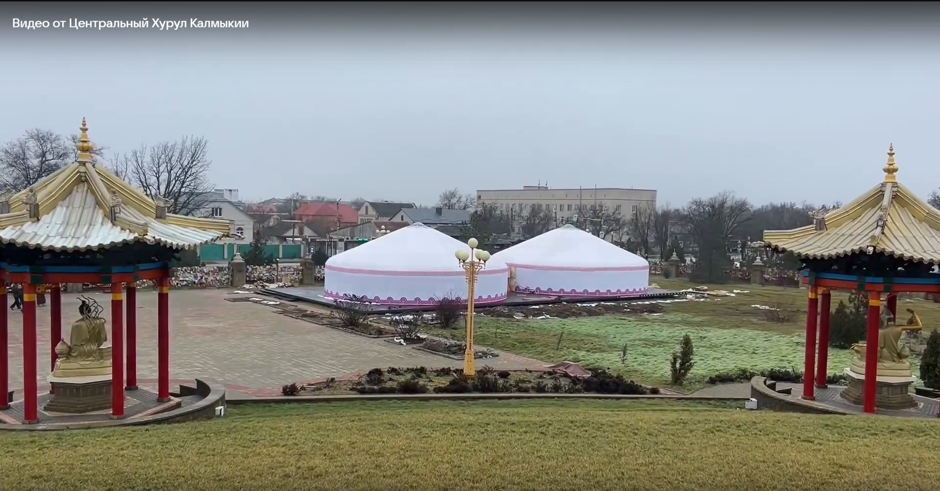 Две большие белые кибитки теперь украшают территорию главного буддийского храма Калмыкии.