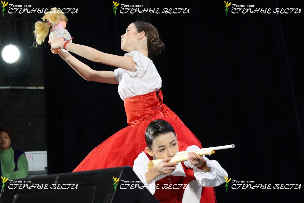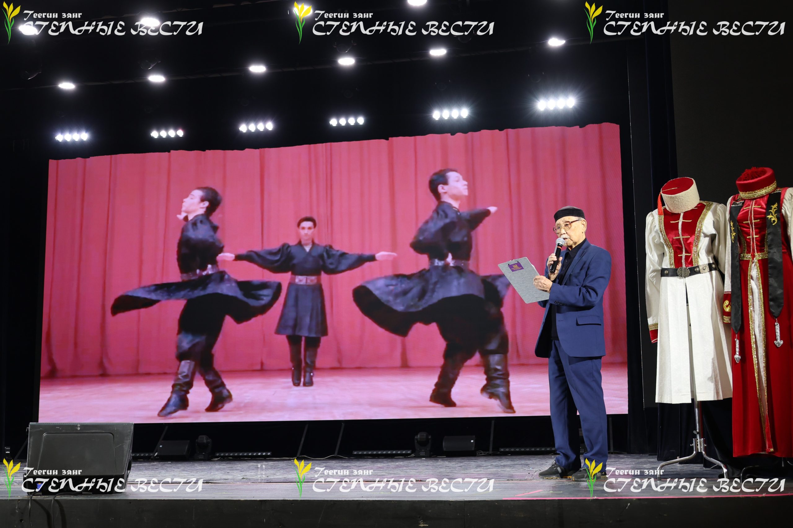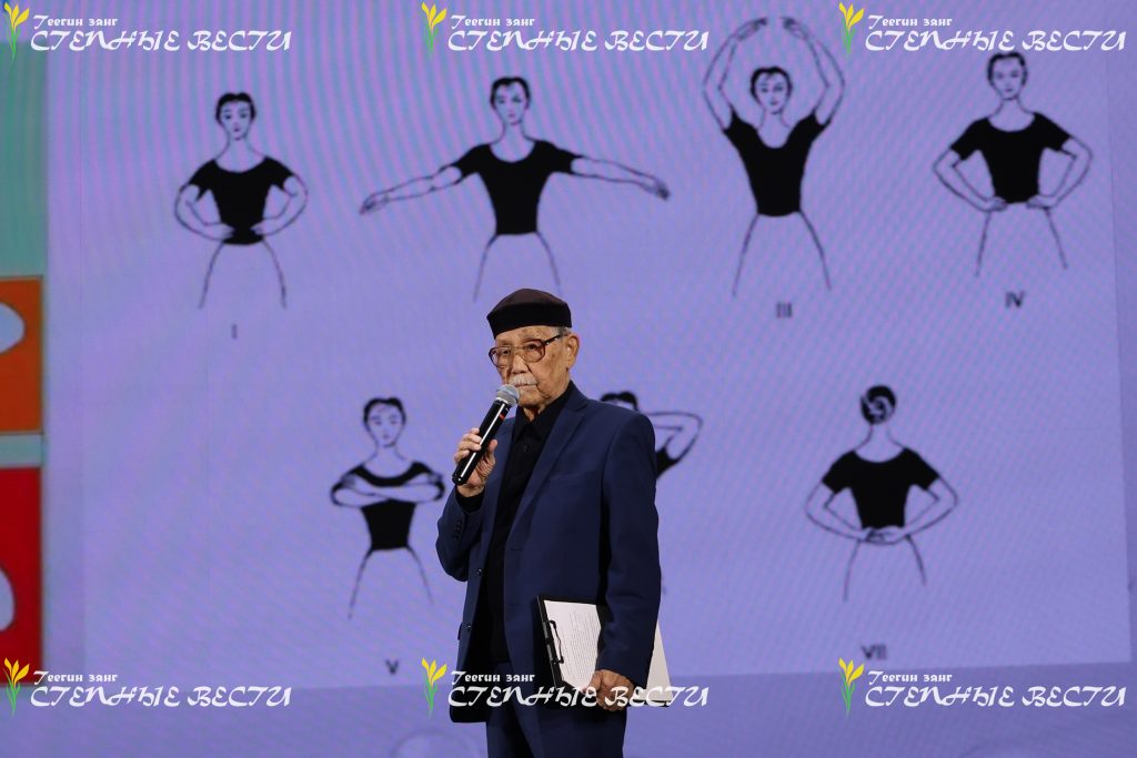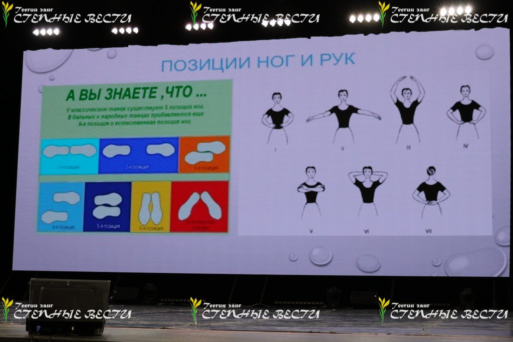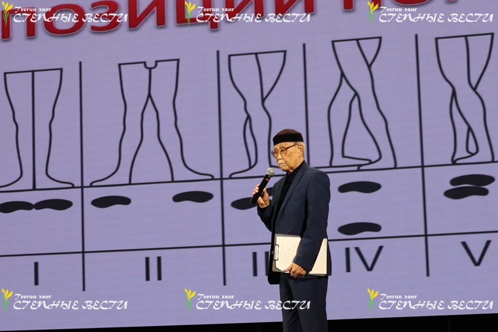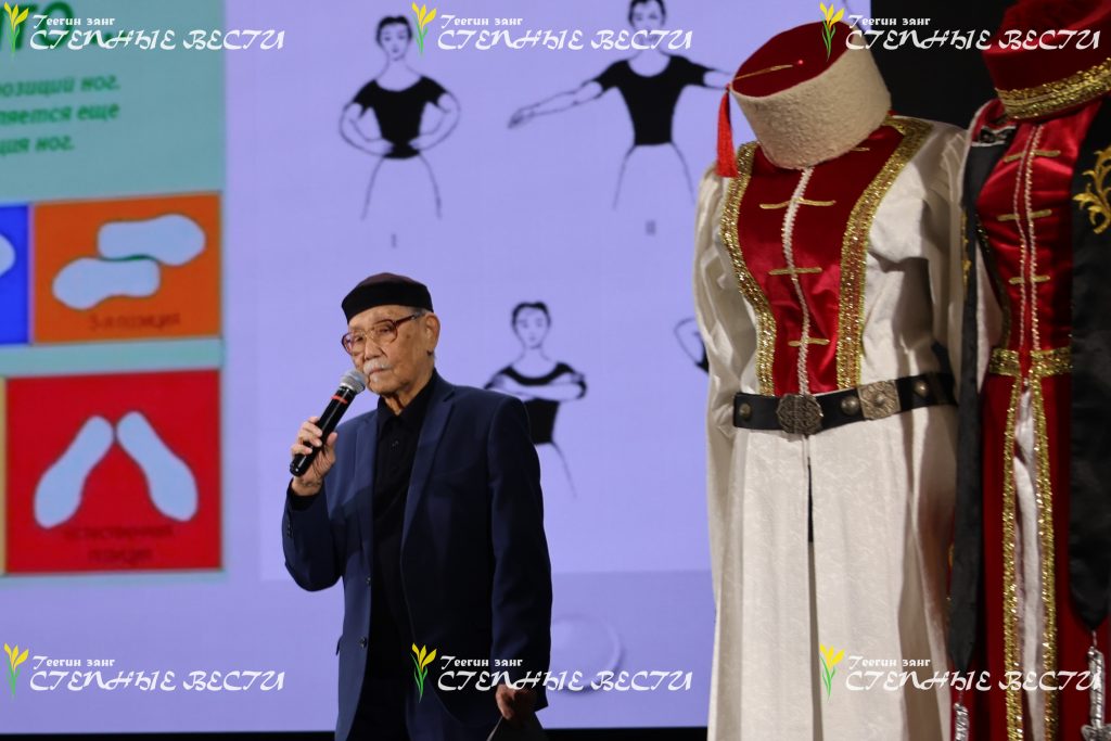 Впрочем, речь о калмыцком танце тоже шла. Слова выступающего об основных калмыцких танцах – ишкимдыке, шарка-барка, чичирдыке, тавшуре, а также о характерном для каждого вида шаге и движениях иллюстрировали и студийцы, и взрослые артисты «Ойратов». Показали на сцене они и танец хромой сороки, который получился у постановщика после поездки к киргизским калмыкам и наблюдений за их танцами, в которых активно участвует плечевой пояс и практически не участвуют ноги.