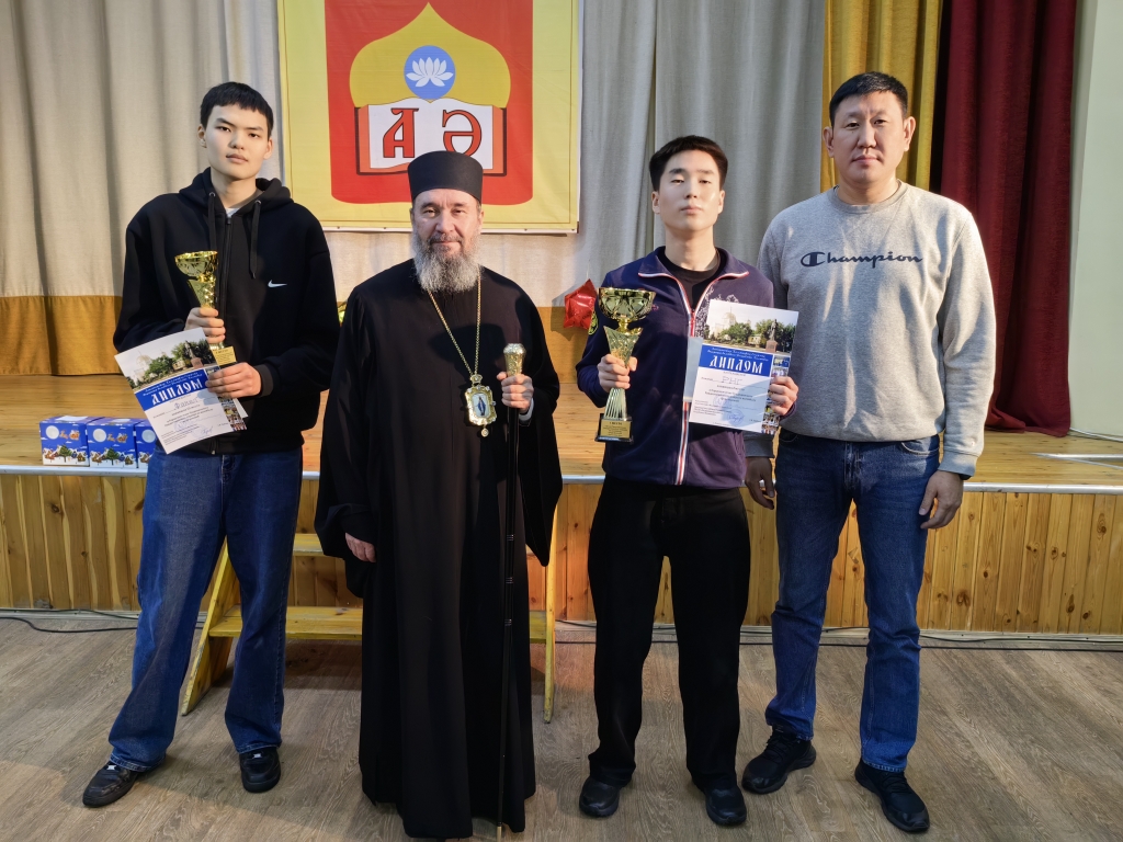 Архиепископ Элистинский и Калмыцкий Юстиниан наградил победителей Рождественского турнира по волейболу.