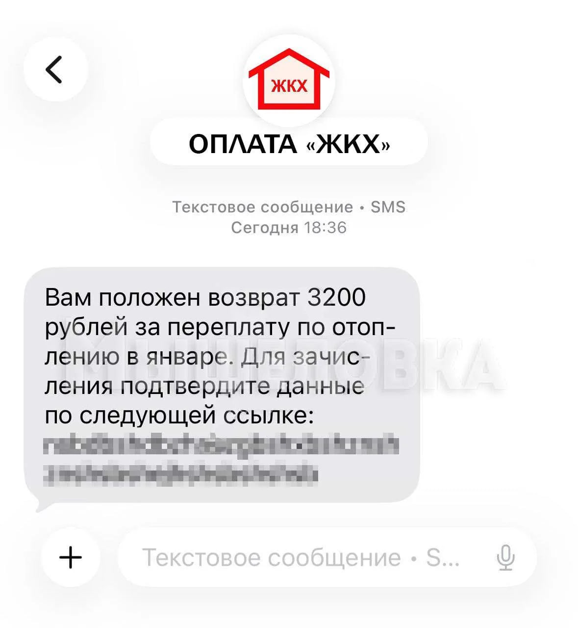 Россиянами приходят сообщения от имени «УК», «ЕИРЦ» или «ЖКХ» с подобным текстом: «Вам положен возврат 3200 рублей за переплату по отоплению в январе. Для зачисления подтвердите данные по следующей ссылке: …»