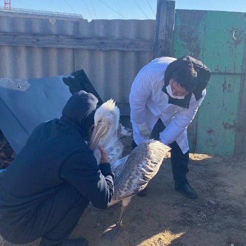 Житель поселка Улан-Хол увидел за своим двором пеликана, который хромал и не мог улететь.