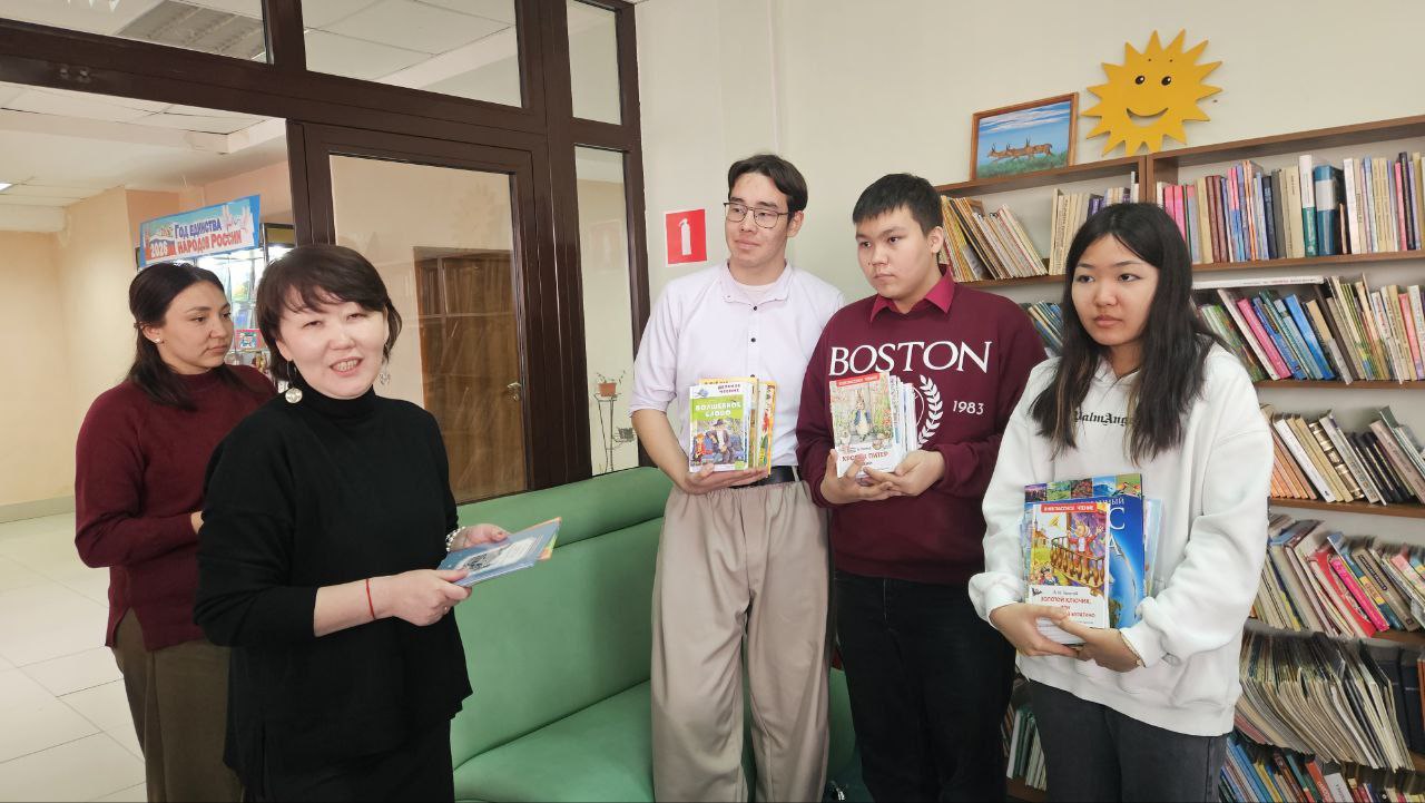По инициативе советника директора по воспитанию Татьяны Надвидовой в акцию с радостью включились все и выбрали делегацию для передачи книг в дни акции в  образовательный центр для детей и юношества Национальной библиотеки им. А.М. Амур-Санана.